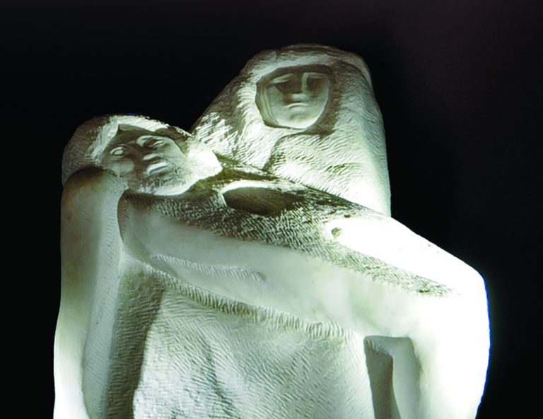 Arte e vita s’intrecciano così in modo radicale e profondo: la Pietà assume un significato universale; nel sacrificio del Cristo tra le braccia della Madre è racchiuso il dramma dell’uomo del XX secolo, il cui cammino è segnato da decine di milioni di morti e da fiumi di sangue versato, in una spirale di inaudita e cieca violenza. Certo, come suggerisce Luzi rileggendo Jacopone da Todi, “quelle crudeltà si operano e si consumano nella Sua carne. [Maria] è stata chiamata Donna de Paradiso e suo figlio è stato chiamato beato. Ma la forza di gravità del dolore sposta il centro nell’umano e solo nell’umano di questa prova”.