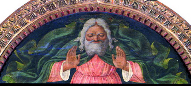Moglie di Giovanni Melzi era Brigida Tanzi, discendente di quella famiglia che agli inizi del Quattrocento aveva invitato a Milano i primi religiosi del priorato della Frigionaia di Lucca, affinché dessero vita a un cenobio attorno a una chiesetta di loro proprietà, quella di Santa Maria della Misericordia, appunto. Anche la donna, naturalmente, è raffigurata in quest’opera, a destra, vegliata e introdotta dall’evangelista Giovanni. Colpisce, di queste due figure, il realismo con cui il Liberale ha dipinto non solo le loro vesti sontuose, ma anche i tratti stanchi e quasi dolenti di questi sposi ormai anziani, che giunti al termine della loro vita terrena testimoniano la loro fede nella risurrezione futura.
