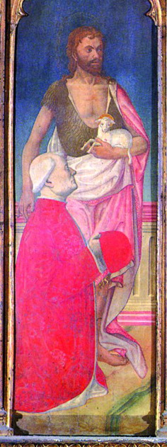 Il monumentale lavoro pittorico fu realizzato attorno al 1480 su commissione di Giovanni Melzi, uno degli uomini più influenti della corte sforzesca, già ambasciatore a Venezia della Repubblica Ambrosiana, quindi consigliere ducale di Galeazzo Maria Sforza, infine nominato conte palatino dallo stesso imperatore Federico III. Melzi, al culmine della sua sfolgorante carriera, volle quest’opera per la sua cappella nella chiesa dell’Abbazia di Casoretto, all’epoca fiorente comunità dei canonici regolari agostiniani: lo vediamo ritratto, infatti, nello scomparto a sinistra del trittico, devotamente inginocchiato e presentato dal suo stesso patrono, san Giovanni Battista, che con una mano regge l’agnello cristico (a ricordo delle parole con le quali il Precursore indicò Gesù come il Salvatore: «Ecco l’agnello di Dio che toglie il peccato del mondo»), mentre con l’altra accarezza paternamente la spalla del nobiluomo milanese, come a rassicurarlo.