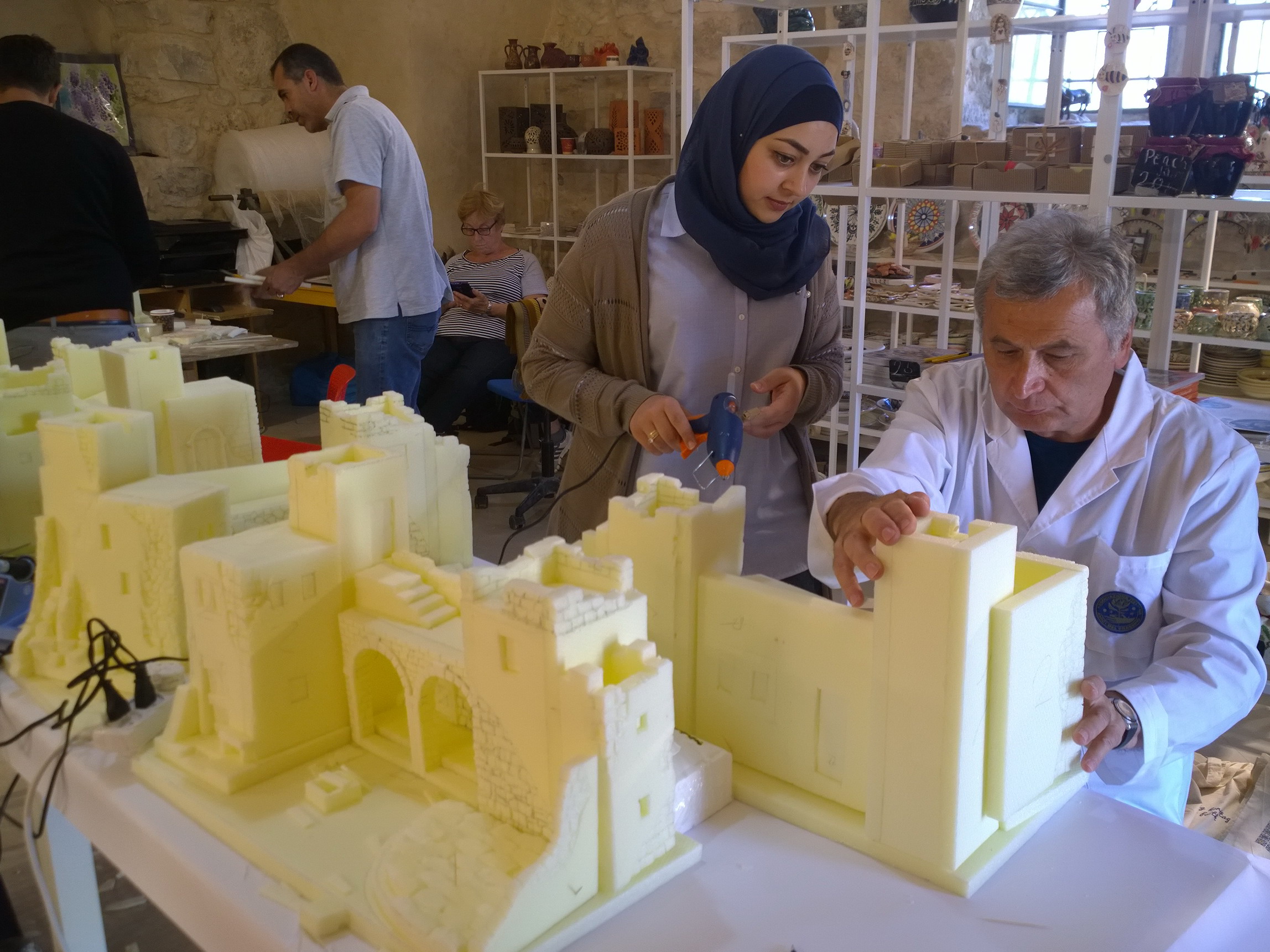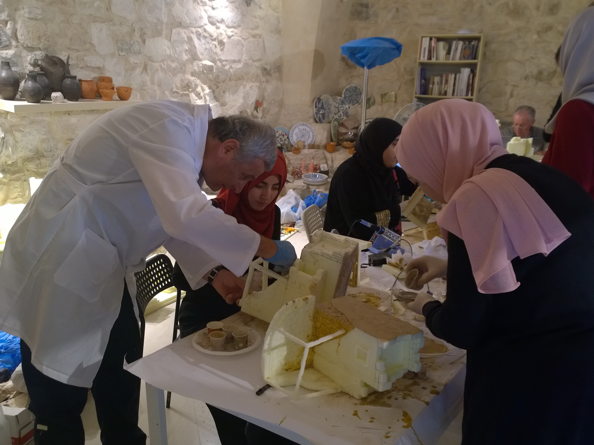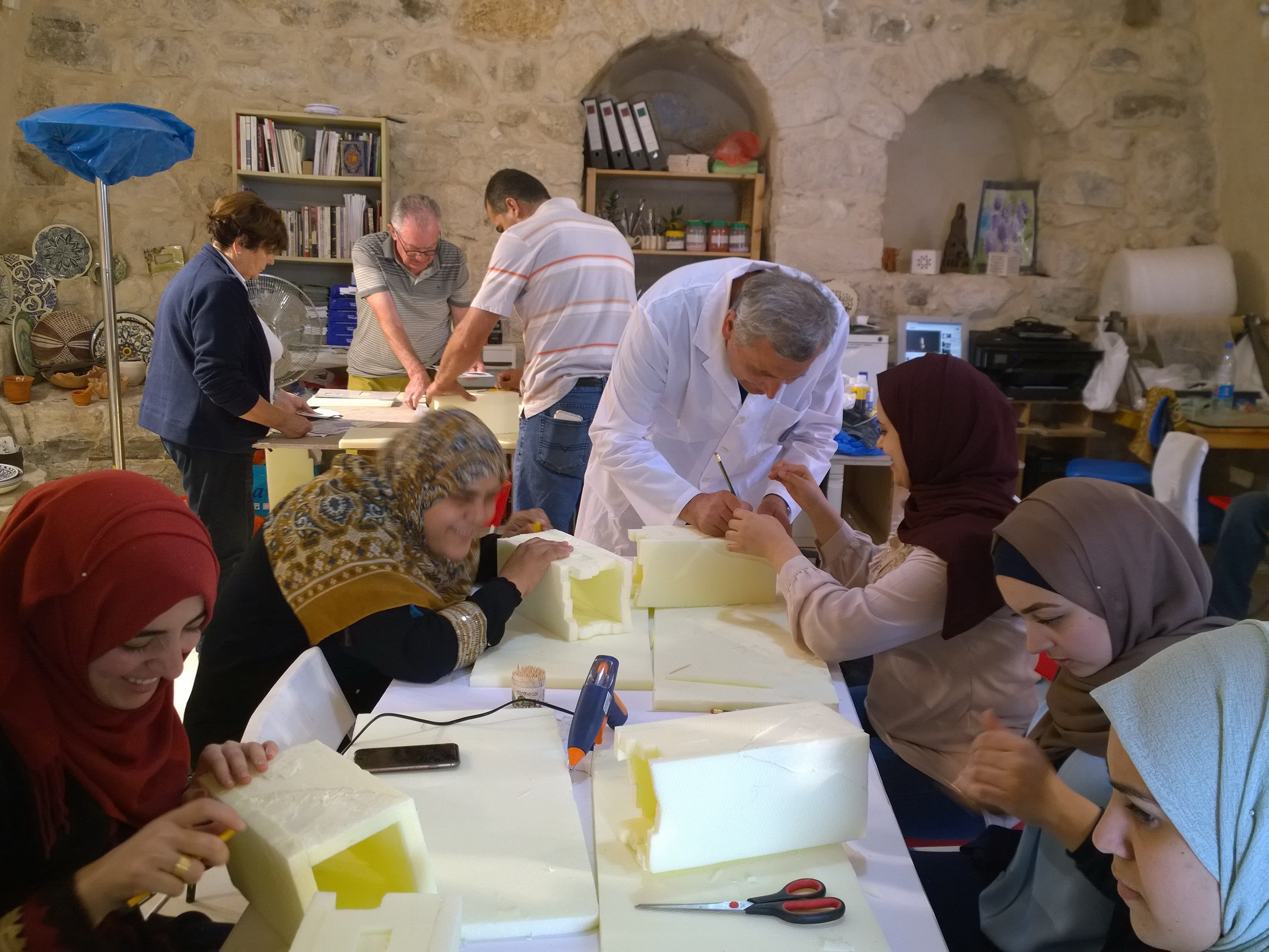 Già lo scorso anno la vicinanza del Nebo (dove sorge il Memoriale di Mosè) alla parrocchia cattolica di Madaba, mi aveva permesso di organizzare un corso pratico di presepismo. Ma quest’anno, nel mese di ottobre, abbiamo osato di più: in stretta collaborazione con l’architetto Osama Hamdan del Mosaic Centre di Gerico e la dottoressa Carla Benelli di Ats Pro Terra Santa, abbiamo organizzato un corso pratico tenutosi presso il Ceramic Centre di Nisf Jubeil, vicino a Sebastia.