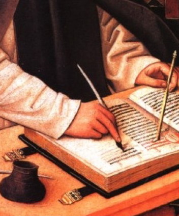 «…dalle querce saliva nebbia. Il monastero era in trepida attesa del carro che trasportava le galle. I monaci silenziosi percorrevano i chiostri molli d’acqua per raggiungere i manoscritti nelle biblioteche. Era tempo di fare l’inchiostro…».