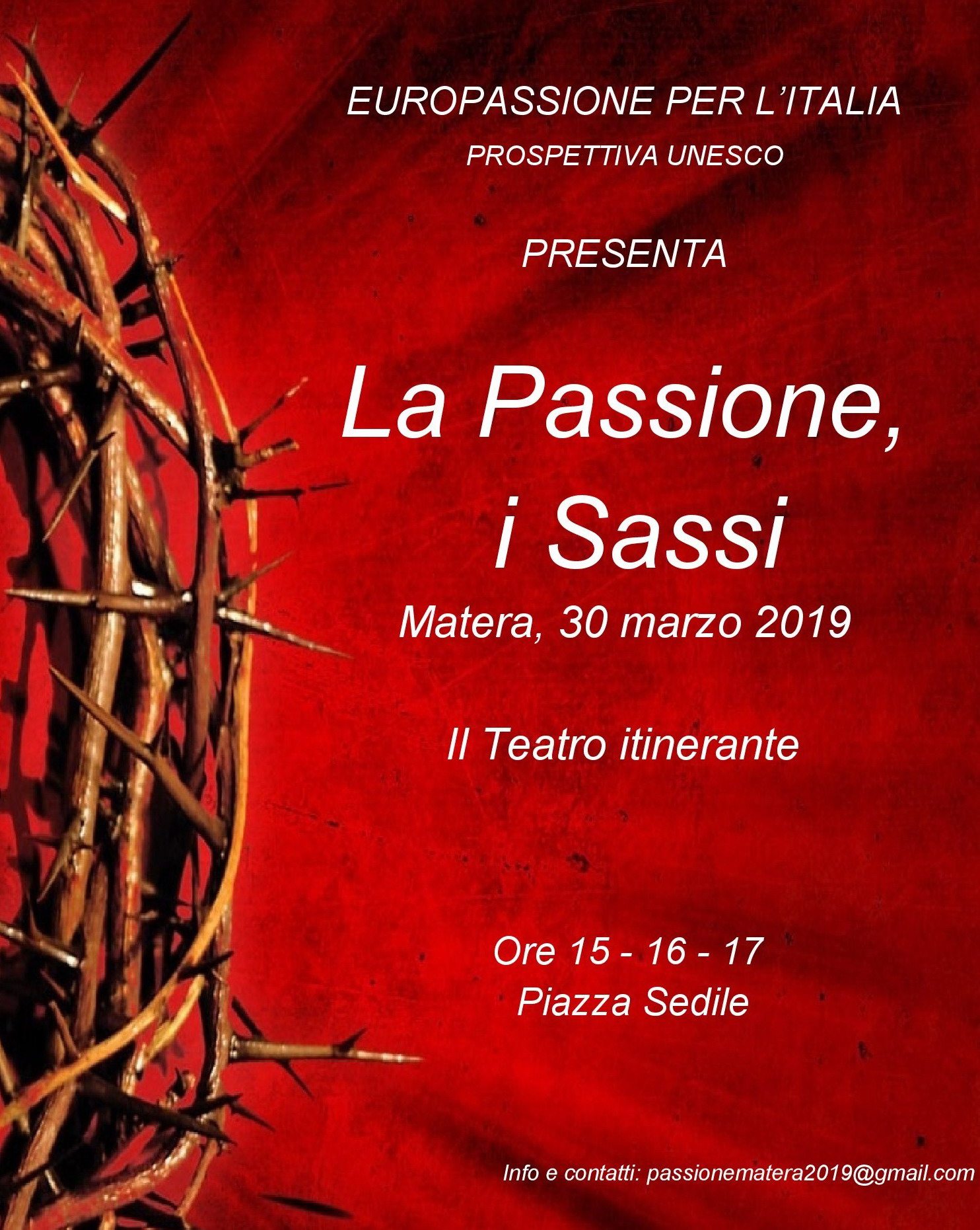 Un fatto: la Passione di Cristo verrà messa in scena, con una performing art condivisa, sabato 30 marzo nella Capitale della Cultura Europea 2019, avendo come personaggi, interpreti, costumi, scenografia, attrezzeria, regia e organizzazione le comunità italiane ed europee del Teatro della Passione.