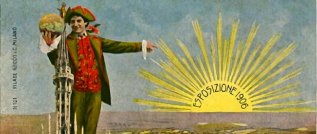 Il tema generale dell’Esposizione milanese è quello dei trasporti: argomento quanto mai d’attualità, se si considerano i velocissimi, e per molti aspetti perfino prodigiosi progressi dei mezzi meccanici di locomozione, dalle ferrovie alla nascente aeronautica (i primi voli dei fratelli Wright sono solo di tre anni prima), ma anche in campo automobilistico e marittimo. Così che la rassegna del 1906, in realtà, diventa una grandiosa celebrazione della modernità, attraverso la scienza e la ricerca, nell’esaltazione della produzione industriale e delle innovazioni tecnologiche (come la radio di Marconi, ad esempio): quasi una sorta di vera e propria “fede” laica che annuncia un mondo nuovo e migliore, carico di positivistico ottimismo.