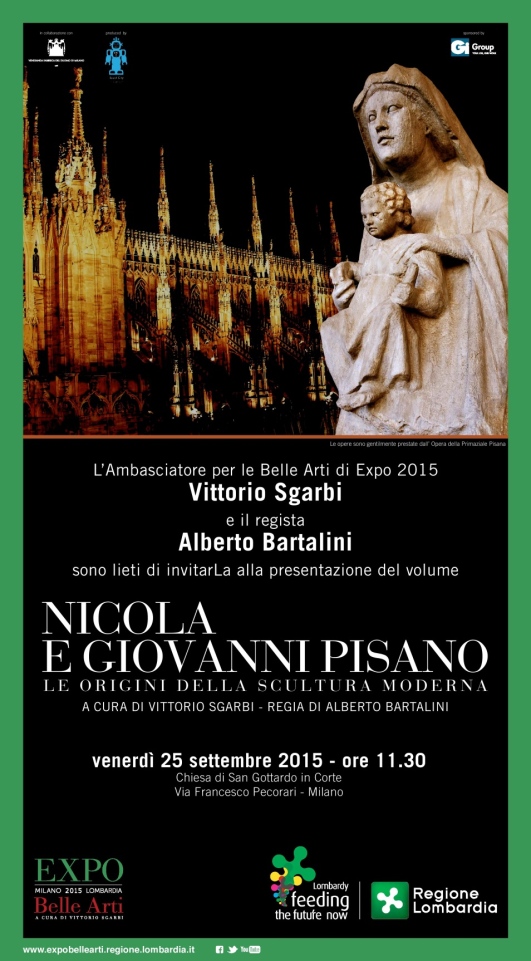 Venerdì 25 settembre, alle ore 11.30, si terrà presso la chiesa di San Gottardo in Corte a Milano (via Francesco Pecorari, 2) la presentazione del volume Nicola e Giovanni Pisano. Le origini della Scultura moderna. L’iniziativa vedrà gli interventi di mons. Gianantonio Borgonovo, presidente della Veneranda Fabbrica del Duomo di Milano, del prof. Vittorio Sgarbi, Ambasciatore per le belle Arti di Expo 2015 e del regista della mostra arch. Alberto Bartalini.