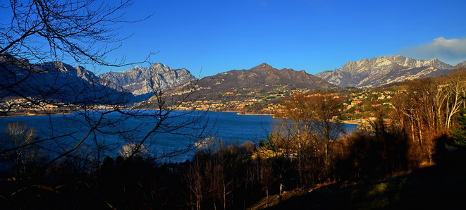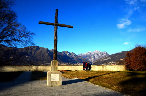 Ma è la scalinata che sale lieve a settentrione ad attirarci. Che sfocia in uno spiazzo inaspettato, con al centro la croce della missione predicata dai padri passionisti all’indomani della tragedia dell’ultima guerra. Una balconata nel verde, protesa sulle scure acque del Lago d’Annone, in faccia alla Grigna, il Resegone di lato. Una visione che accende la meraviglia nello sguardo, e la gratitudine nel cuore. Sì, adesso sappiamo dove Marco d’Oggiono attinse infine i suoi colori dell’anima.