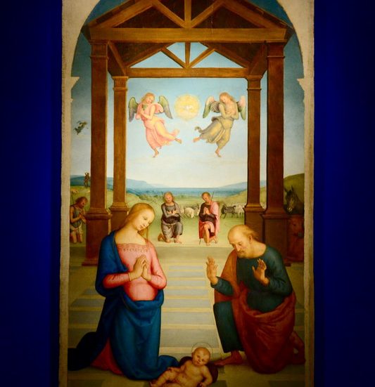 Questa Natività del Perugino è un capolavoro di grazia e di eleganza. Un capolavoro che, proveniente dalla Galleria nazionale dell’Umbria, oggi è offerto a Milano e a tutti quanti per iniziativa del Museo Diocesano “Carlo Maria Martini”, riprendendo così un’apprezzata e generosa tradizione che negli anni ha portato nel capoluogo lombardo opere d’arte dei più grandi maestri, da Caravaggio ad Antonello da Messina, da Botticelli a Lorenzo Lotto, da Mantegna a Dürer, ospitandole negli spazi dei Chiostri di Sant’Eustorgio.
