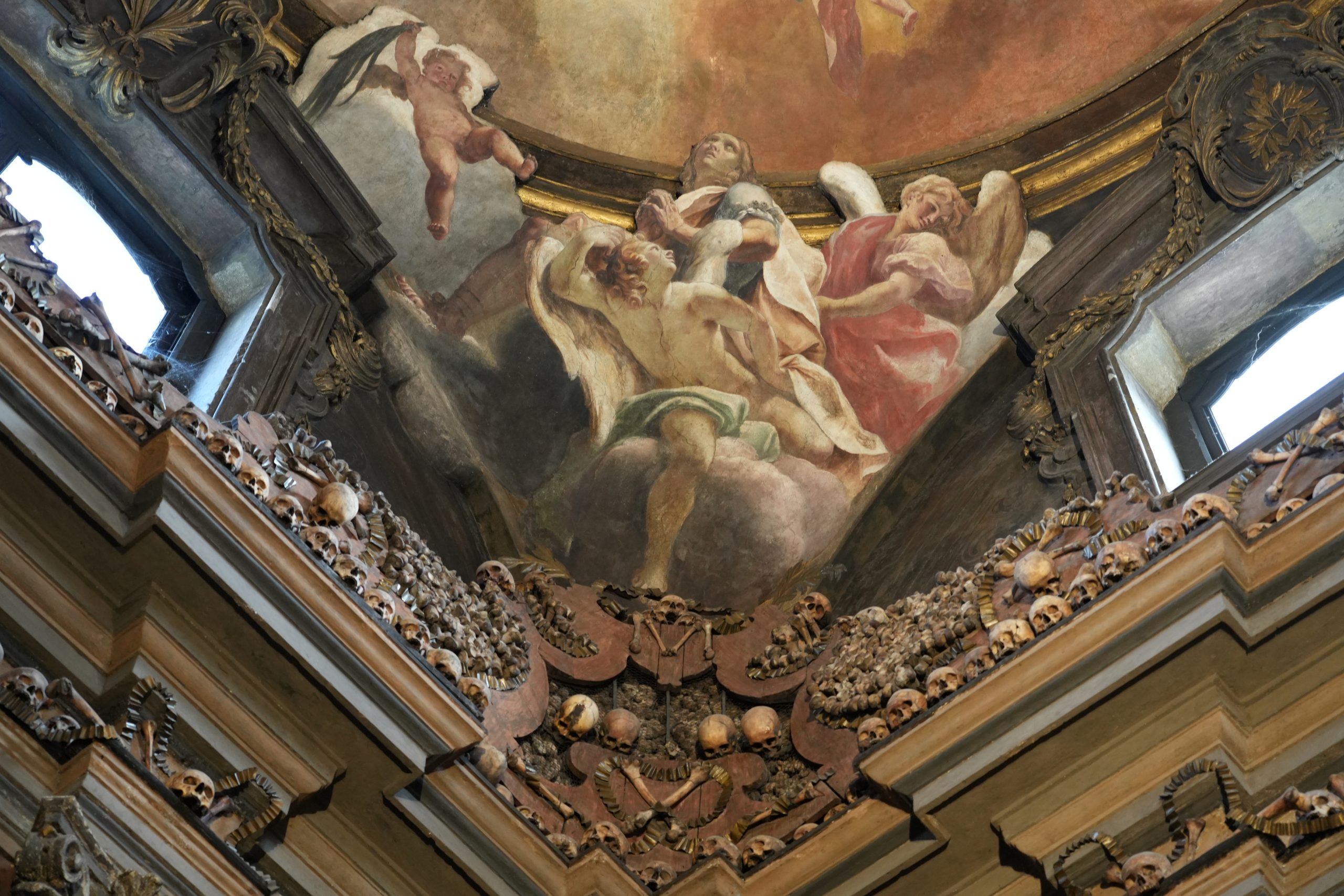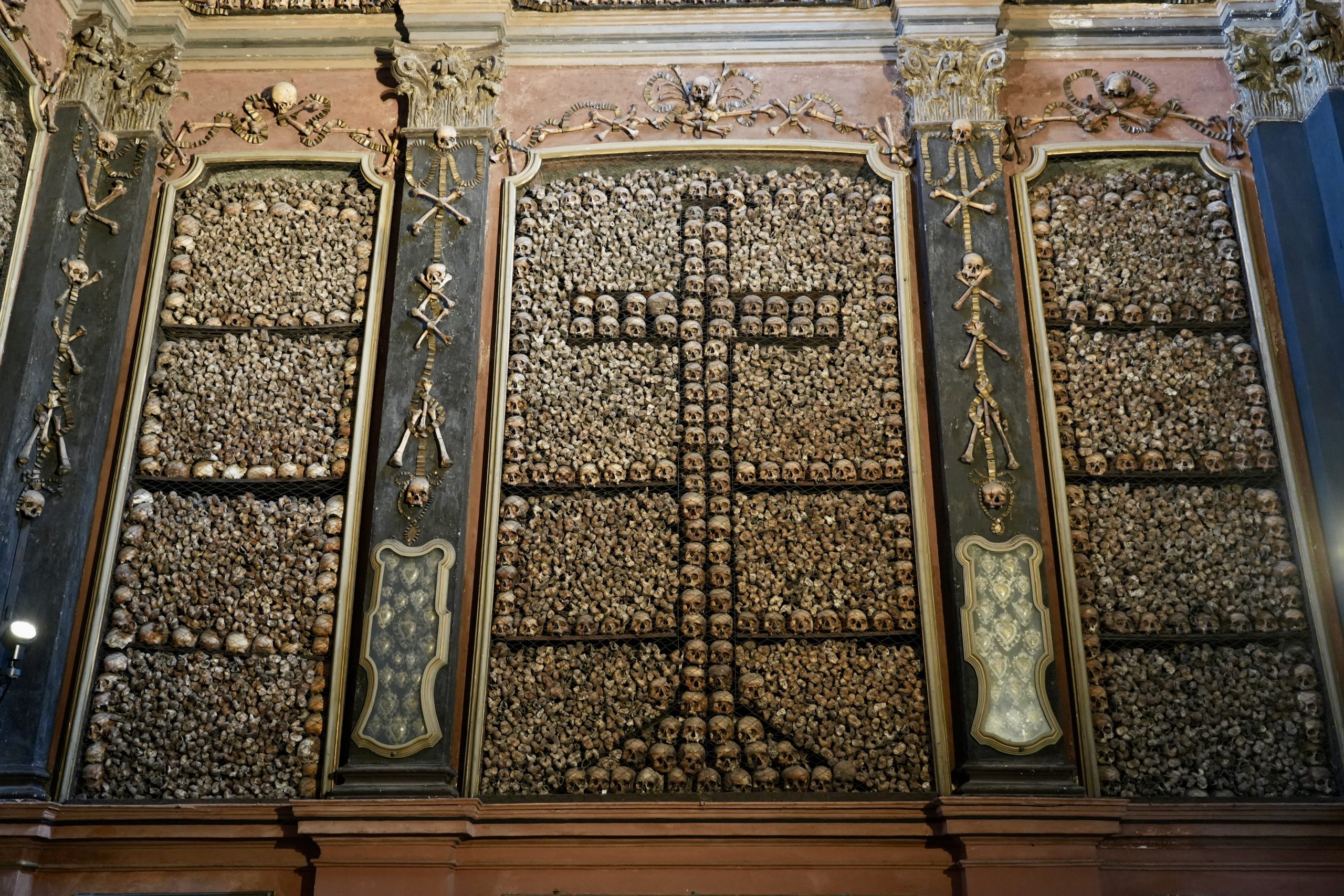 La cappella attuale è il frutto di un lungo lavoro di ricostruzione operato dopo il crollo del campanile della vicina chiesa di Santo Stefano nel 1642. Le ossa sono raccolte sulle pareti della cappella e disposte in modo da comporre due grandi croci che si innalzano verso la volta. Su quest’ultima si ammira il volo delle anime verso la gloria del cielo, opera realizzata dall’artista veneto Sebastiano Ricci. A rivolgere il suo sguardo sui fedeli al loro ingresso è la statua della Madonna de la Soledad, che rappresenta la dolorosa solitudine di Maria ai piedi della Croce.
