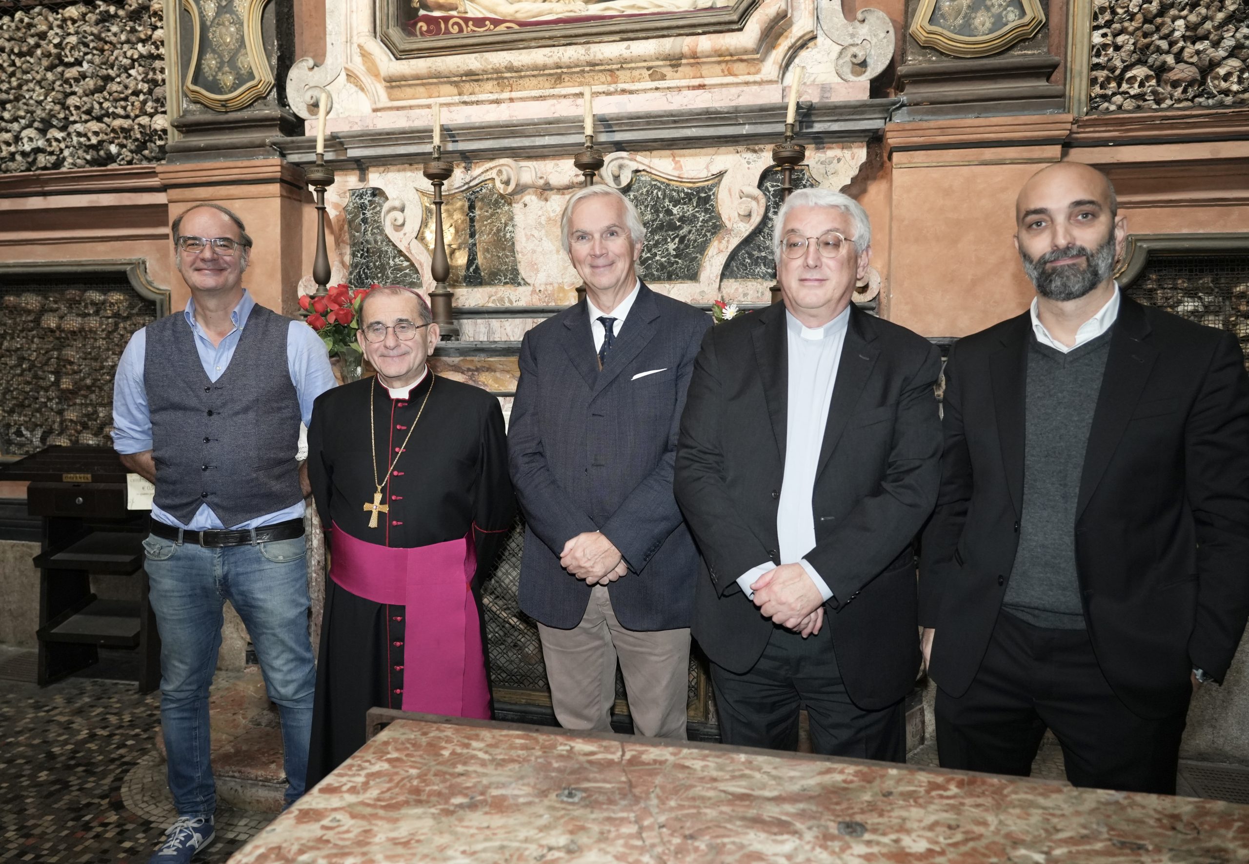 «Quando è stato costruito questo luogo non c’era la luce elettrica e l’unica illuminazione possibile erano le candele, che penso esaltassero il senso del macabro e quello che è a portata di sguardo immediato, quindi il ricordo della morte. Ma il messaggio cristiano non è per diffondere una specie di terrore, ma per seminare speranza – ha affermato l’Arcivescovo di Milano, monsignor Mario Delpini -. Qui, di fronte ai ricordi dei nostri fratelli e sorelle di secoli passati, il messaggio non è che la vita non ha senso perché tutto finisce nel nulla. Queste croci ci dicono che non siamo destinati a morire, ma a salire. Certamente qui si parla di morte, ma anche della promessa di vita eterna – ha sottolineato Delpini -. Tutte le chiese esistono per ricordarci che, sebbene dobbiamo morire, siamo fatti per una vita che non finisce, in cui si vedono i colori, la gioia e che dall’uniformità cupa della tomba c’è una esaltazione gioiosa del destino eterno che ci aspetta».