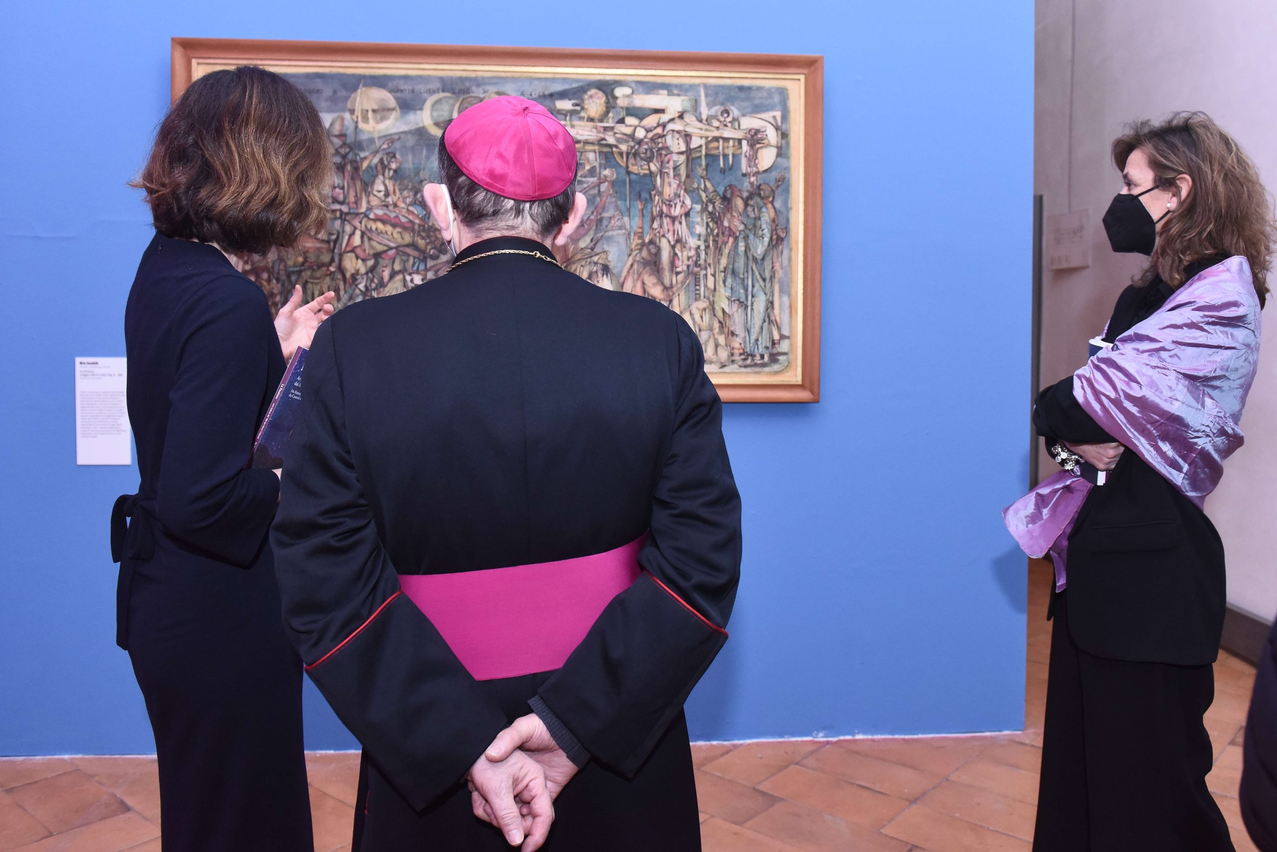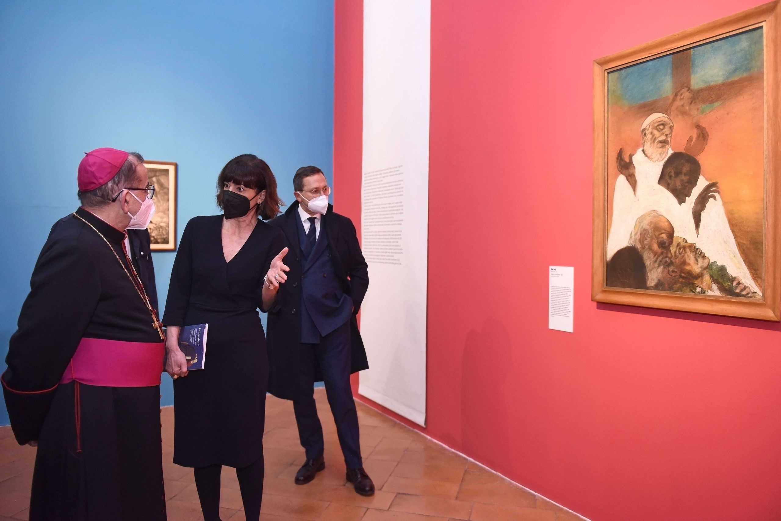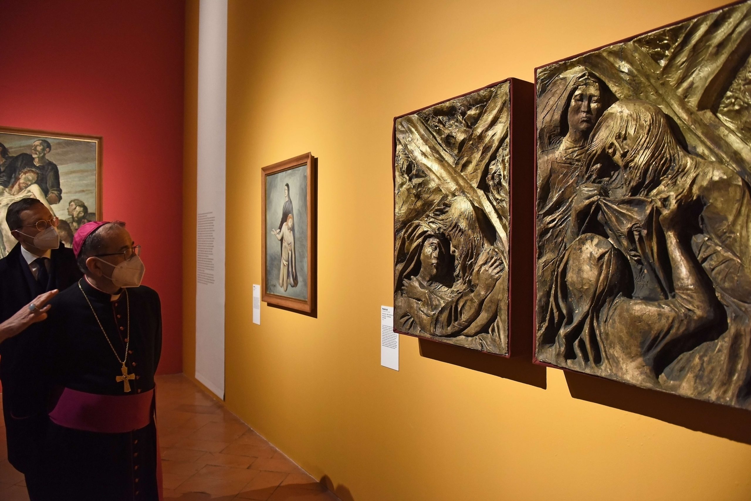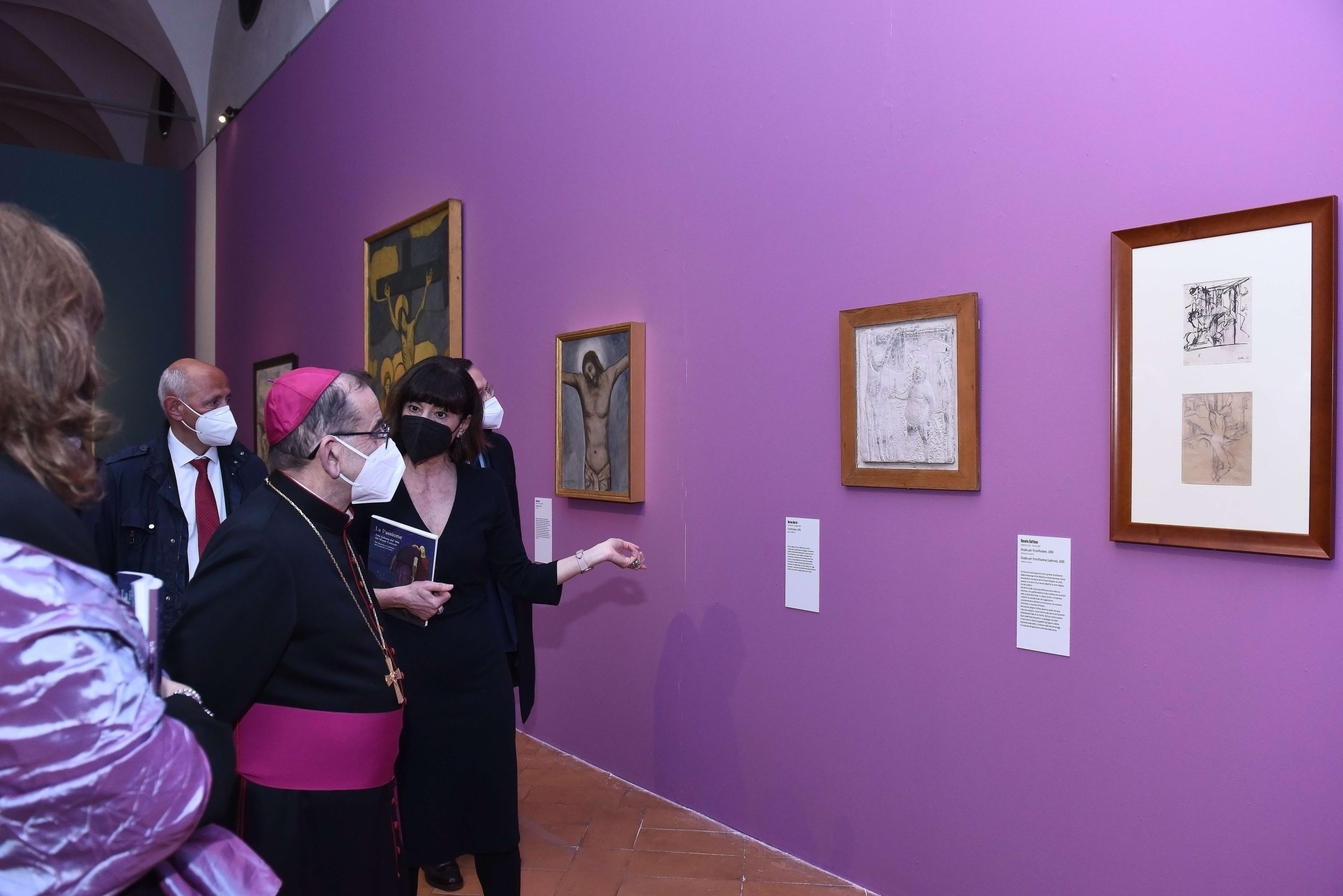 Dopo aver espresso il proprio apprezzamento «per la qualità delle opere scelte, per l’allestimento, l’intensità del risultato e per la condivisione, la consuetudine e l’amicizia che si è stabilita tra il Museo diocesano e i Musei vaticani, che dice dell’elaborazione di un progetto che impegna in una visione comune», l’Arcivescovo Mario richiama quello che definisce «un secondo capitolo, più complicato e pieno di domande, ispiratogli dalla visione in anteprima della mostra. In questo momento, in cui ci sono fratelli che uccidono fratelli, la Passione di Cristo ci fa domandare se gli uomini sanno scrivere del dolore, raccontare del giusto ingiustamente ucciso. I quadri esposti qui dicono di sì. Gli uomini del ’900 hanno visto talmente tanto soffrire che sono stati capaci di commentarlo».