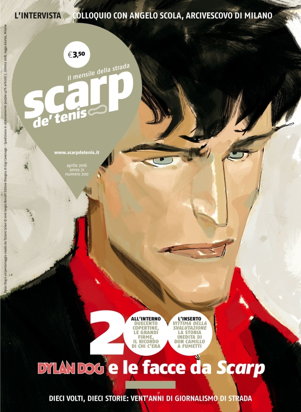 Un traguardo importante, un numero speciale che celebra vent’anni della storia di Scarp de’ tenis e vent’anni di giornalismo di strada. Il numero 200 di Scarp sarà in distribuzione da venerdì 1 aprile e per tutto il mese. Un numero che si arricchisce di contenuti speciali e che, grazie a Sergio Bonelli Editore, riporta Dylan Dog sulla copertina nel ritratto opera di Gigi Cavenago. Ecco un breve sommario.
