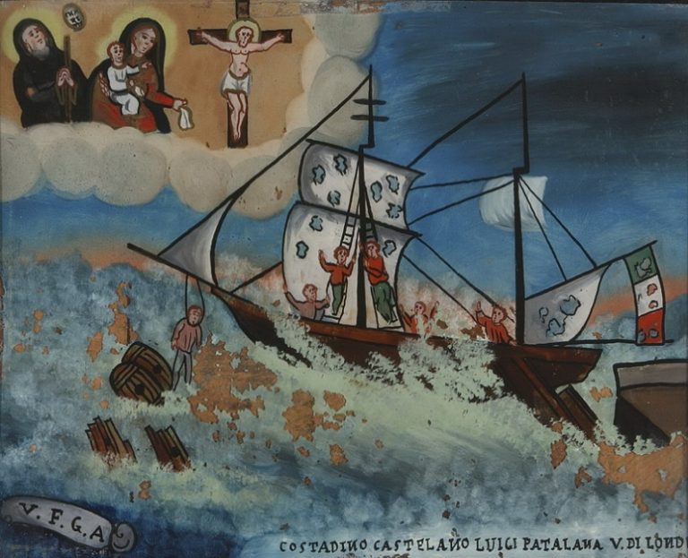 Sempre, tuttavia, senza tralasciare né dimenticare, per questi ex voto, il loro significato religioso, le motivazioni di fede personale e condivisa per cui sono stati voluti e creati. Un vero e proprio attestato di ringraziamento nei confronti di quel santo o di quella santa che nel momento del bisogno, chiamati a gran voce, quasi “costretti” all’azione, hanno voluto intercedere per un poveraccio qualsiasi – e non solo per i potenti della Terra! – il salvifico intervento divino. E così per la Vergine Maria, verso cui i miracolati dei nostri ex voto paiono assai devoti: ognuno con la sua “personale” Madonna, ma tutti con la medesima Madre.