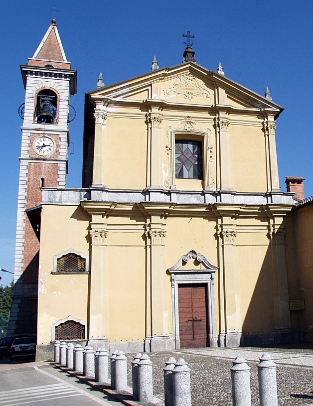 Si tratta di un gruppo scultoreo composto da Cristo Crocefisso e trionfo di angeli adagiati in composizione sull’architrave, intagliata e decorata con policromie e dorature raffinatissime. L’opera è conservata all’interno della chiesa prepositurale di Mezzana in Somma Lombardo (Va), in prossimità dell’arco sovrastante l’ingresso al presbiterio al culmine dell’unica navata.