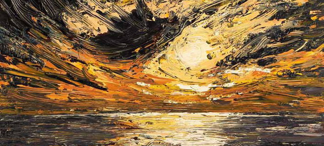 «Questa mostra racconta di paesaggi, di orizzonti, ma riguarda in realtà il cuore dell’uomo, perché è lì, dove poniamo il nostro orizzonte (tra cielo e terra, appunto) che risiede il termine ed il significato del nostro desiderare – spiega l’artista stesso -. Lì si gioca il senso ultimo che ogni uomo dà a se stesso e ne rappresenta in qualchemodo la consistenza. Credo che questo desiderio del cuore che chiamo orizzonte, sia lo stesso per ogni uomo (perché identico è il desiderio dell’uomo che la sua umanità si realizzi nella pienezza) e ci chiede drammaticamente ed inesorabilmente di venire con onestà ascoltato, rispettato ed accolto nella sua interezza. Solo così, ne sono convinto, potremmo cominciare a costruire una società a misura d’uomo, di ogni uomo».