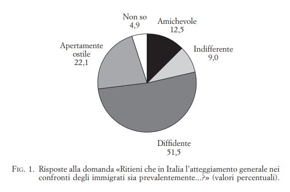 Il tema dell’immigrazione fornisce significativi elementi per comprendere come gli under 35 si relazionino con le dinamiche sociali del nostro Paese. Oltre il 70% dei giovani intervistati ritiene che l’atteggiamento generale degli italiani nei confronti degli immigrati sia prevalentemente diffidente e ostile (grafico allegato). Nel confronto con la rilevazione del 2015 il dato si impenna: in quell’anno, infatti, la stessa percezione riguardava il 57%. È interessante anche notare come la gran parte dei rispondenti esprima comunque una opinione e come solo il 4,9% se ne astenga. Inoltre, in condizioni di scarsità di lavoro di cui soffrono soprattutto le nuove generazioni, i giovani tendono ad assumere un atteggiamento protezionistico: la maggioranza (soprattutto nelle classi sociali più deboli) ritiene che l’immigrazione dovrebbe essere gestita in modo da non entrare in competizione con le condizioni di lavoro di chi già è in Italia. In particolare, più del 60% ritiene che i datori di lavoro dovrebbero prendere in considerazione l’offerta di lavoro degli italiani prima di valutare quella degli immigrati (62,6%), a fronte del 37,4% che si dichiara in disaccordo con questa affermazione. Il timore della concorrenza lavorativa degli immigrati non risulta comunque più forte rispetto al prolungamento della permanenza dei lavoratori più anziani e alla crescente automazione nei processi produttivi. Esiste quindi una preoccupazione generale sull’impatto dei cambiamenti demografici, sociali e tecnologici rispetto alle opportunità di lavoro, che spinge i giovani con capitale umano più debole verso posizioni difensive. Inoltre, se si considera l’atteggiamento verso gli stranieri regolari presenti in Italia, si ottiene una valutazione largamente positiva (solo uno su tre pensa che la loro presenza peggiori la sicurezza e l’economia del paese).