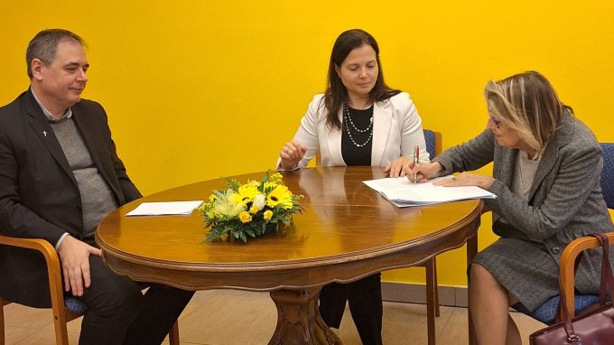 La firma dell’atto da parte della presidente della Fondazione Borsieri-Colombo, Alessandra Carsana e del presidente di Sacra Famiglia mons. Bruno Marinoni