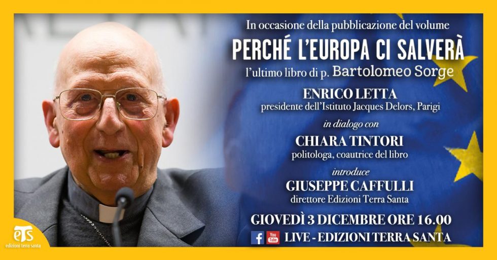 Direi anzitutto che è passato così poco tempo dal 2 novembre, giorno della Pasqua di padre Sorge, che non riesco ancora a guardare a Perché l’Europa ci salverà come a un libro postumo. Concordo invece sul fatto che si possa considerare il suo testamento civile. Durante i mesi di isolamento – per lui all’Aloisianum di Gallarate (Varese) da fine febbraio 2020 al giorno della morte – le nostre videochiamate si sono intensificate, un po’ per scambiarci qualche idea sull’attualità, e un po’ per quel desiderio sempre vivo in me di poter assorbire anche solo un millesimo del suo acume nell’interpretare i segni dei tempi. Ci siamo poi chiesti se questi nostri scambi avessero potuto giovare anche ad altri. È nato così il format “20’ con padre Sorge” (tuttora disponibile su YouTube – ndr) che ci ha accompagnato per 5 “episodi” dal 30 giugno al 15 ottobre sui canali social dell’editore Ets.