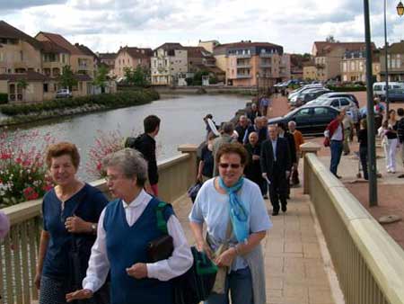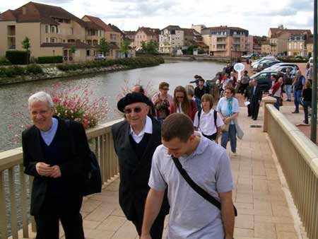 Partiti all’alba dal Castello Sforzesco di Milano, i due pullman che trasportano i pellegrini sono arrivati nel pomeriggio in questa cittadina immersa nelle campagne della Francia centrale. La prima tappa è stata presso il grandioso santuario del Sacre Coeur, edificato tra il XI e il XII secolo dai monaci di Cluny. Un capolavoro di arte romanica ritenuto uno delle più belle chiese di Francia. Lì, alle 16, il cardinale Dionigi Tettamanzi ha celebrato l’Eucaristia.