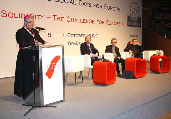La solidarietà «che impegna tutti a un protagonismo attivo e responsabile verso gli altri» è «la miglior cura alla crisi economico-finanziaria che l’Europa e il mondo stanno subendo, è l’antidoto a ogni futura crisi». Lo ha detto ieri sera il cardinale Dionigi Tettamanzi, nell’omelia della messa che ha aperto le Giornate sociali cattoliche per l’Europa su “Solidarietà, la sfida per l’Europa”, promosse fino all’11 ottobre a Danzica dalla Commissione degli episcopati della Comunità europea. La solidarietà «che impegna tutti a un protagonismo attivo e responsabile verso gli altri» è «la miglior cura alla crisi economico-finanziaria che l’Europa e il mondo stanno subendo, è l’antidoto a ogni futura crisi». Lo ha detto ieri sera il cardinale Dionigi Tettamanzi, nell’omelia della messa che ha aperto le Giornate sociali cattoliche per l’Europa su “Solidarietà, la sfida per l’Europa”, promosse fino all’11 ottobre a Danzica dalla Commissione degli episcopati della Comunità europea. La «solidarietà di fatto» «Un compito grandioso sta oggi davanti a noi, ai 27 Paesi dell’Unione Europea e ai loro 500 milioni di cittadini: riprendere e proseguire il cammino verso un’Europa solidale, all’interno e a favore di un mondo solidale; un’Europa capace di sognare, progettare e costruire una solidarietà sempre più ampia» ha affermato l’Arcivescovo. «Nel cammino europeo verso l’unità e la solidarietà – ha avvertito – è richiesto l’impiego generoso di tutte le forze umane, sociali, economiche, politiche, culturali. Ma non basta: occorre una robusta opera educativa ai valori morali e spirituali, anzi ai valori propriamente religiosi». In questo percorso, «siamo tutti convinti che al profetismo delle parole deve corrispondere il profetismo dei fatti».Di qui il valore della «solidarietà di fatto» auspicata nel 1950 da Robert Schuman. Richiamando la sua Dichiarazione del 9 maggio 1950 («l’Europa non potrà farsi in una sola volta né sarà costruita tutta insieme; essa sorgerà da realizzazioni concrete che creino anzitutto una solidarietà di fatto»), considerata una pietra miliare del processo di unificazione europea, il cardinale Tettamanzi ha definito «davvero significativa e stimolante l’espressione “solidarietà di fatto”, perché rimanda a una solidarietà che non può esaurirsi nelle intenzioni e nei sentimenti, ma deve esprimersi nella concretezza del vissuto quotidiano». «Non basta qualche gesto magari generoso, ma isolato – è il monito dell’Arcivescovo -; occorre piuttosto uno stile complessivo di vita plasmato dalla logica dell’apertura e dell’accoglienza». Una forza «propriamente politica» «La vera solidarietà – ha proseguito il cardinale Tettamanzi – non è un ideale astratto», ma «un appello personale e ineludibile ad “alzarsi” in prima persona, a farsi carico del bisogno altrui, a dare del proprio in termini materiali e ancor più di operosità e partecipazione umane». Secondo l’Arcivescovo, «nel perseguire e diffondersi della prassi della solidarietà si sprigiona una forza tipicamente sociale, anzi propriamente politica, che impegna tutti a un protagonismo attivo e responsabile verso gli altri per uno sviluppo umano integrale».«Solidarietà ed etica sono imprescindibili l’una dall’altra. La solidarietà deve sapersi muovere nella complessità dei cambiamenti e dalle difficoltà d’oggi. E l’etica è lo strumento per questo discernimento». Per il Cardinale, dunque, «solidarietà e etica insieme» ci condurranno «all’uscita dalla crisi» perché «non c’è futuro senza solidarietà». Questa è la sfida «che attende l’Europa dell’immediato futuro, alla quale vogliamo guardare nel segno della speranza cristiana». –