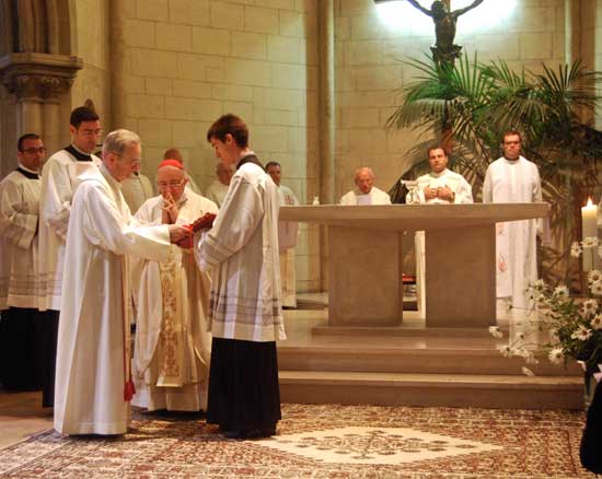 Occorre voltarsi per vedere in faccia santa Bernadette Soubirous. Il suo capo è reclinato. Lo è dal 1879. Da quando Bernadette, stesa nel suo letto, si voltò per vedere chi stava entrando dalla porta. Chi in quel momento era con lei, per assisterla e confortarla in punto di morte, non vide nessuno varcare quella porta. Ma Bernadette – probabilmente – qualcuno vide. E proprio dopo quello sguardo, morì. Anche alla grotta di Massabielle, a Lourdes, per diciotto volte si era ripetuta la stessa situazione. Lei improvvisamente si voltava per guardare ciò che gli altri non erano in grado di vedere. La Chiesa ha ben presto saputo riconoscere e spiegare chi appariva agli occhi della piccola e povera ragazza. E così da 150 anni il mondo si reca in pellegrinaggio a Lourdes e ricorda il nome della piccola e povera santa che vedeva la Madonna e la chiamava “aquero”, “quella là”. Occorre voltarsi per vedere in faccia santa Bernadette Soubirous. Il suo capo è reclinato. Lo è dal 1879. Da quando Bernadette, stesa nel suo letto, si voltò per vedere chi stava entrando dalla porta. Chi in quel momento era con lei, per assisterla e confortarla in punto di morte, non vide nessuno varcare quella porta. Ma Bernadette – probabilmente – qualcuno vide. E proprio dopo quello sguardo, morì. Anche alla grotta di Massabielle, a Lourdes, per diciotto volte si era ripetuta la stessa situazione. Lei improvvisamente si voltava per guardare ciò che gli altri non erano in grado di vedere. La Chiesa ha ben presto saputo riconoscere e spiegare chi appariva agli occhi della piccola e povera ragazza. E così da 150 anni il mondo si reca in pellegrinaggio a Lourdes e ricorda il nome della piccola e povera santa che vedeva la Madonna e la chiamava “aquero”, “quella là”. Messa nel convento dove Bernadette ha vissuto 12 anni Anche l’Arcivescovo di Milano, il cardinale Dionigi Tettamanzi, 12 preti e gli altri cento pellegrini ambrosiani che lo accompagnano nel pellegrinaggio in Francia si sono voltati per guardare gli occhi della santa che ha visto la Madonna. La giornata di sabato 11 luglio è iniziata proprio con la celebrazione dell’Eucaristia nel centro della Francia, a Nevers, nel convento di Saint-Gildard. E’ il luogo in cui ha vissuto per dodici anni, fino alla morte avvenuta all’età di 35 anni, santa Bernadette Soubirous, la veggente di Lourdes, il cui corpo è ora qui conservato in un’urna esposta ai fedeli.Santa, non semplicemente perché diciotto volte gli è apparsa la Madonna a Lourdes, ma, come ha spiegato Tettamanzi nell’omelia per la “luminosa professione religiosa, condotta tra gli alti e bassi di una salute malferma che la portò ad una morte precoce, fece dunque seguito agli anni esaltanti e turbolenti delle visioni di Lourdes, nei quali Bernadette conservò sempre una pace divina che risultò uno degli elementi più credibili della sua straordinaria esperienza”. L’incontro con il Vescovo di Nevers A custodire le spoglie e la memoria di Bernadette ci sono le Suore della Carità, lo stesso ordine cui apparteneva la santa, e la Chiesa di Nevers, rappresentata dal vescovo monsignor Francis Deniau, giunto in monastero per salutare i pellegrini milanesi. A contraccambiare la cortesia per la visita e l’ospitalità, il cardinale Tettamanzi ha donato al monastero la casula indossata nella celebrazione dell’Eucaristia. E poi un duplice augurio. Anzitutto alla “guida spirituale” del pellegrinaggio, il cardinale Dionigi Tettamanzi che sette anni fa, l’11 luglio 2002, veniva nominato da papa Giovanni Paolo II – chiamandolo da Genova – Arcivescovo di Milano. Calorosi – da parte dei pellegrini e dello stesso cardinale Tettamanzi – anche gli auguri al Pontefice per il suo onomastico, nel giorno in cui la chiesa ricorda la festa liturgica di san Benedetto. Il viaggio verso Alencon, la città dei coniugi Martin E’ iniziato poi un lungo trasferimento che ha portato i pellegrini nella storica città di Alencon che diede i natali ai coniugi Zélie e Luis Martin, i genitori di santa Teresina di Lisieaux. Un tempo non inutile. Le ore in pullman sono ben utilizzate dal gruppo per pregare e riflettere, aiutati dal liturgista don Norberto Valli, da 5 seminaristi del Seminario di Venegono e dalla relazione Monsignor Ennio Apeciti, storico della Chiesa e Responsabile dell’Ufficio diocesano per le cause dei santi. Una relazione che ha aiutato i pellegrini a conoscere in modo approfondito la vicenda umana e spirituale di santa Bernadette, la piccola santa che voltava il capo per vedere la Madonna. – – – Diario giornalieroPrimo giorno (10 luglio) () – Omelia del Cardinale a Paray le Monial (https://www.chiesadimilano.it/or/ADMI/apps/docvescovo/files/1419/Francia_Paray.doc) – Photogallery – Un pellegrinaggio “per imparare a dire grazie” – Tettamanzi: ambrosiani in pellegrinaggio – Video-intervista a don Massimo Pavanello – Secondo giorno (11 luglio) () – Omelia del Cardinale a Nevers (https://www.chiesadimilano.it/or/ADMI/apps/docvescovo/files/1420/Francia_Nevers.doc) – Photogallery – Voltare il capo per vedere la Madonna – Da quel matrimonio celebrato di notte – Foto della visita al monastero di S. Bernadetta – Foto dei Vespri nella chiesa di Alencon – Foto della visita alla casa natale di S. Teresa – Mons. Apeciti, chi era S. Bernadetta – Terzo giorno (12 luglio) () – Lisieux. Messa nella basilica di S. Teresa. Omelia del Cardinale (https://www.chiesadimilano.it/or/ADMI/apps/docvescovo/files/1421/Francia_Lisieux.doc) – La terre est pleine d’amour� (https://www.chiesadimilano.it/or/ADMI/apps/docvescovo/files/1422/Francia_Lisieux_fr.doc) – Photogallery della Messa a Lisieux – Non ci spaventi il dolore – Photogallery della visita al monastero di S. Teresina – Messa nella basilica (video integrale) – Quarto giorno (13 luglio) () – Vézelay, omelia del Cardinale (https://www.chiesadimilano.it/or/ADMI/apps/docve