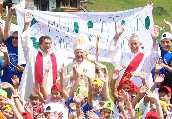 Dopo la giornata trascorsa ieri a Pinzolo con l’oratorio di Olgiate Olona, stamane Tettamanzi è stato a Campestrin (frazione di Mazzin) in provincia di Trento, nel parco della casa estiva del Collegio Rotondi di Gorla Minore (Va).