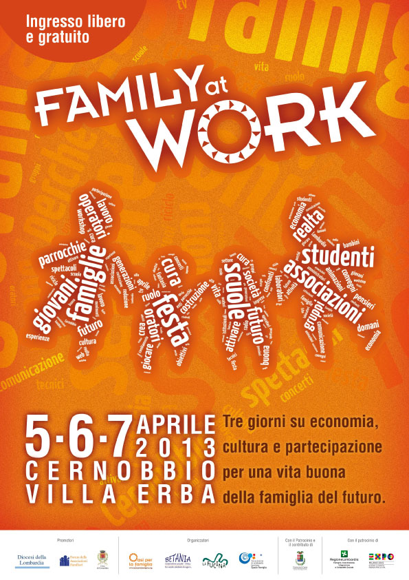 Proseguire la positiva intuizione dei temi di Family 2012 dando origine a un momento aggregante e costruttivo: questo l’obiettivo di “Family at work”, in programma a Villa Erba di Cernobbio (Como) dal 5 al 7 aprile. Il progetto nasce da una collaborazione tra la Conferenza Episcopale Lombarda, il Comune di Cernobbio, la Provincia di Como e il Forum delle Associazioni Familiari che, avvalendosi delle competenze organizzative e metodologiche di Oasi per la Famiglia, sta coinvolgendo diversi soggetti che si riferiscono a realtà ecclesiali e civili, pubbliche e private, del mondo del terzo settore e delle imprese.