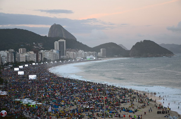La spiaggia di Copacabana questa sera e questa notte ha gareggiato con l’Oceano, con i giovani separati dalle onde solo da un sottile lembo di sabbia. Tre milioni, forse più. Un altro oceano, umano, o forse sarebbe meglio dire di cuori. Per nulla impauriti, stretti gli uni agli altri, a sfidare il freddo, si sono aperti solo per far passare Papa Francesco, un nuovo Mosè, per restare in tema di mare. Un passaggio lento. Papa Francesco ha assaporato i suoi giovani, li ha salutati, ha indirizzato loro abbracci, carezze, baci. Quasi singolarmente. Lo ha fatto in questi giorni e soprattutto questa sera, indicando loro una direzione, un cammino, verso una sorta di Terra promessa: «Oggi il Signore continua ad avere bisogno di voi giovani per la sua Chiesa. Anche oggi chiama ciascuno di voi a seguirlo nella sua Chiesa e a essere missionari».