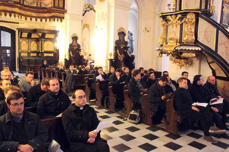 Nel pomeriggio, presso la chiesa di San Floriano, dove il futuro Papa ha svolto il suo ministero per alcuni anni come vicario parrocchiale, il cardinale Scola ha tenuto la seconda meditazione dal titolo “Karol Wojtyla l’uomo, il cristiano, il Papa. Una testimonianza che ha segnato il passaggio dal secondo al terzo millennio”, proseguendo nell’itinerario di rilettura meditata di alcuni testi poetici di Giovanni Paolo II. Al termine i sacerdoti hanno avuto un tempo per la ripresa personale della meditazione e per la preghiera personale.
