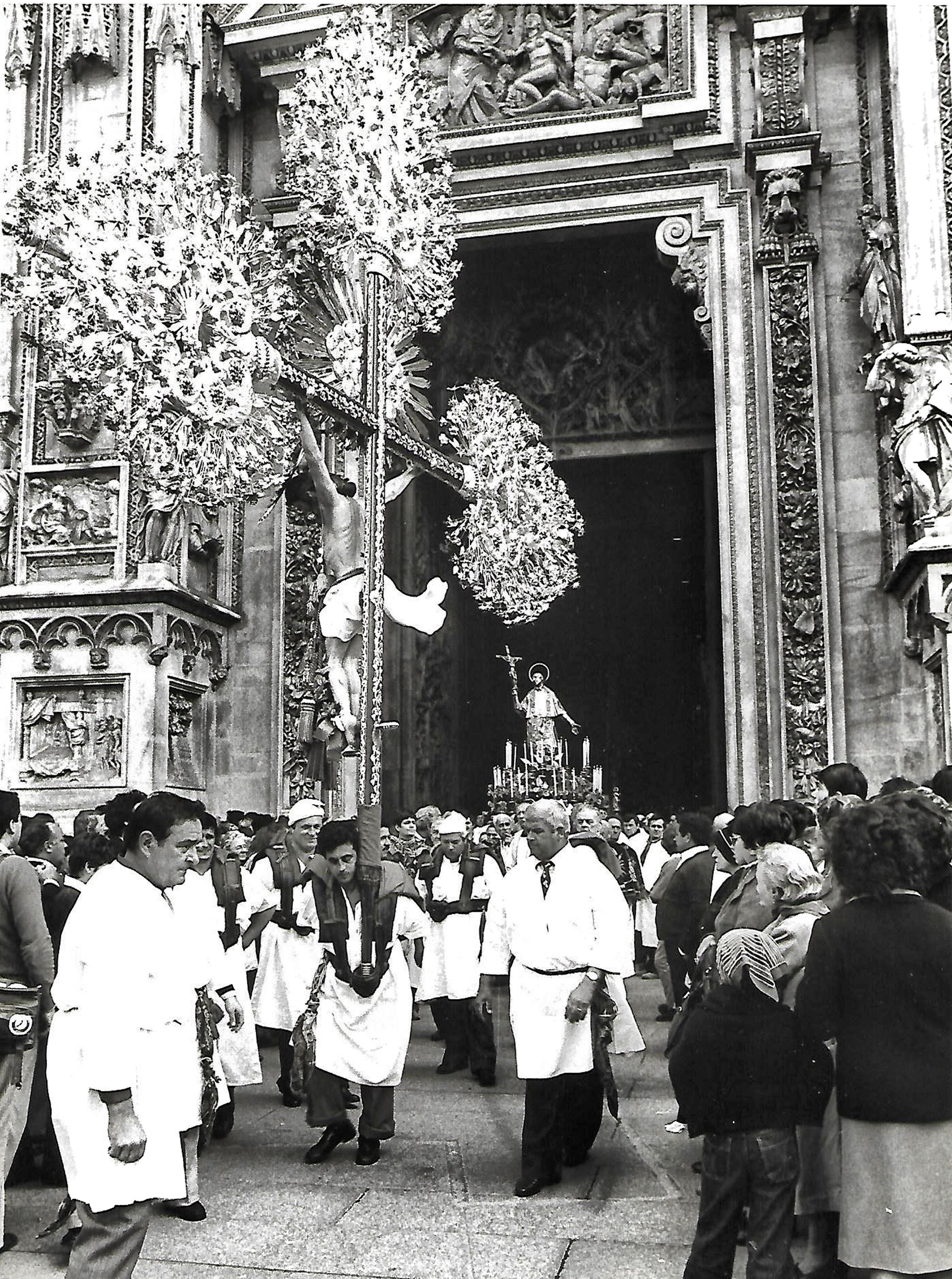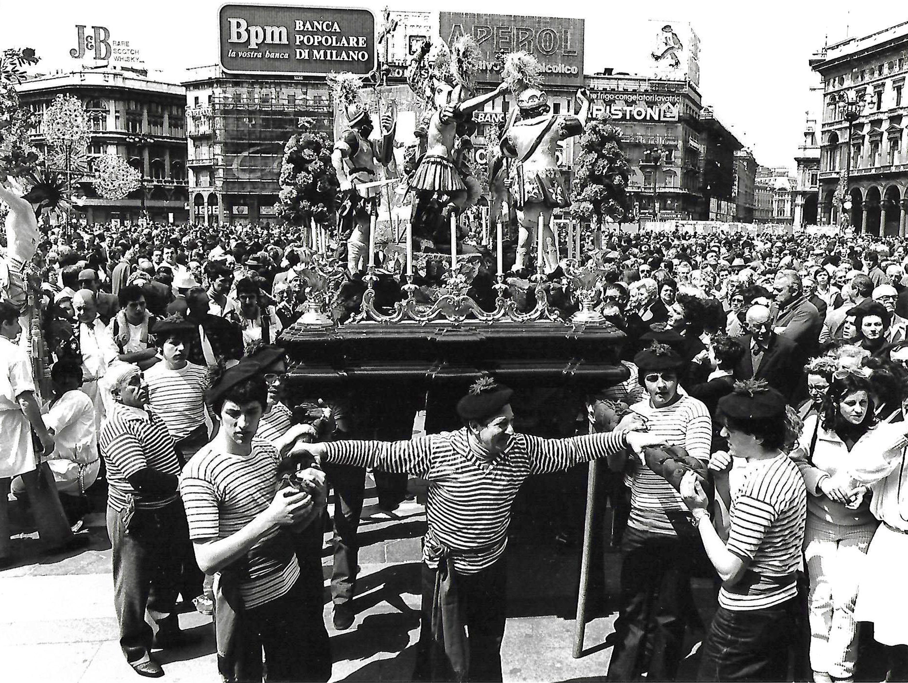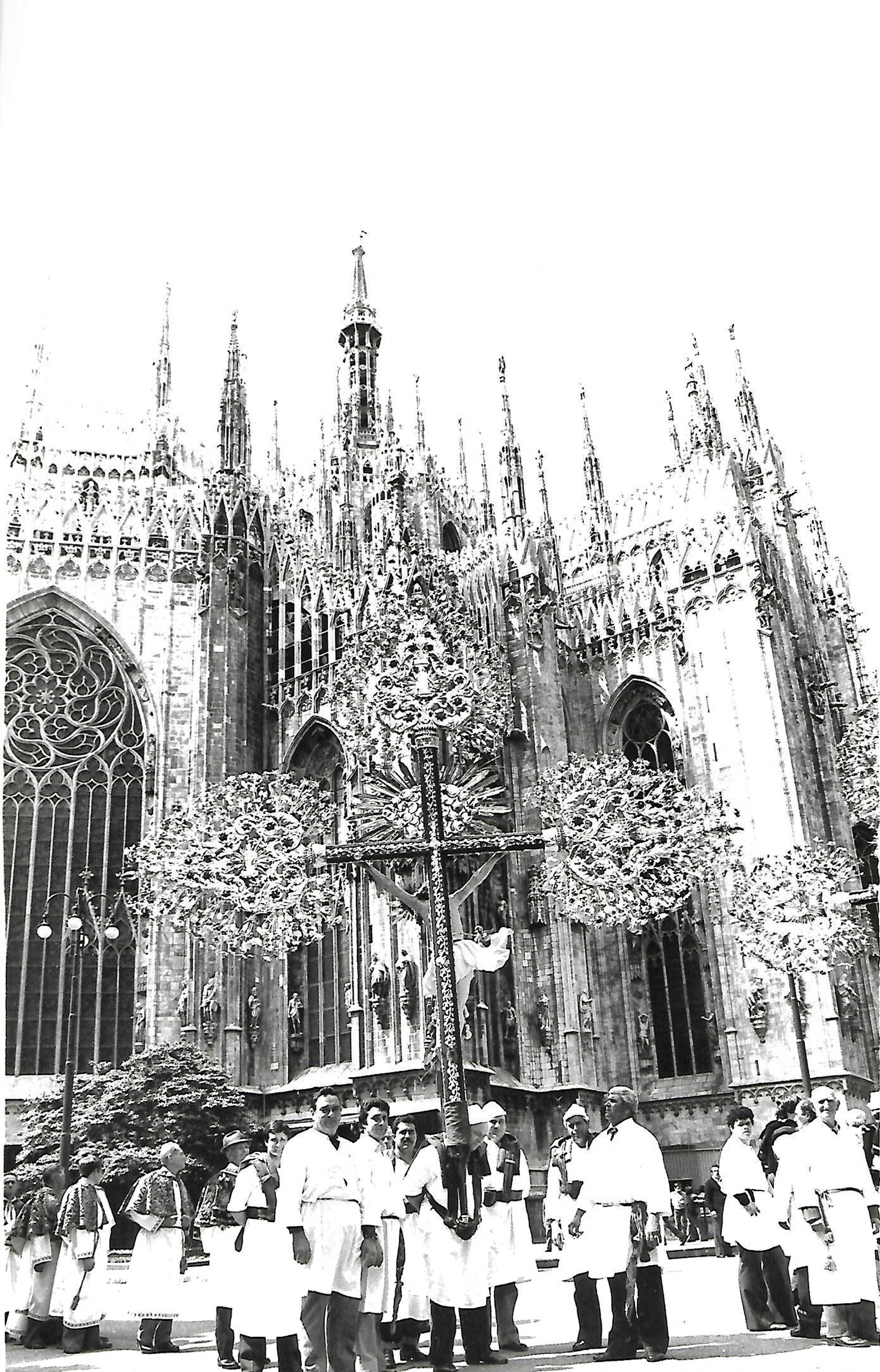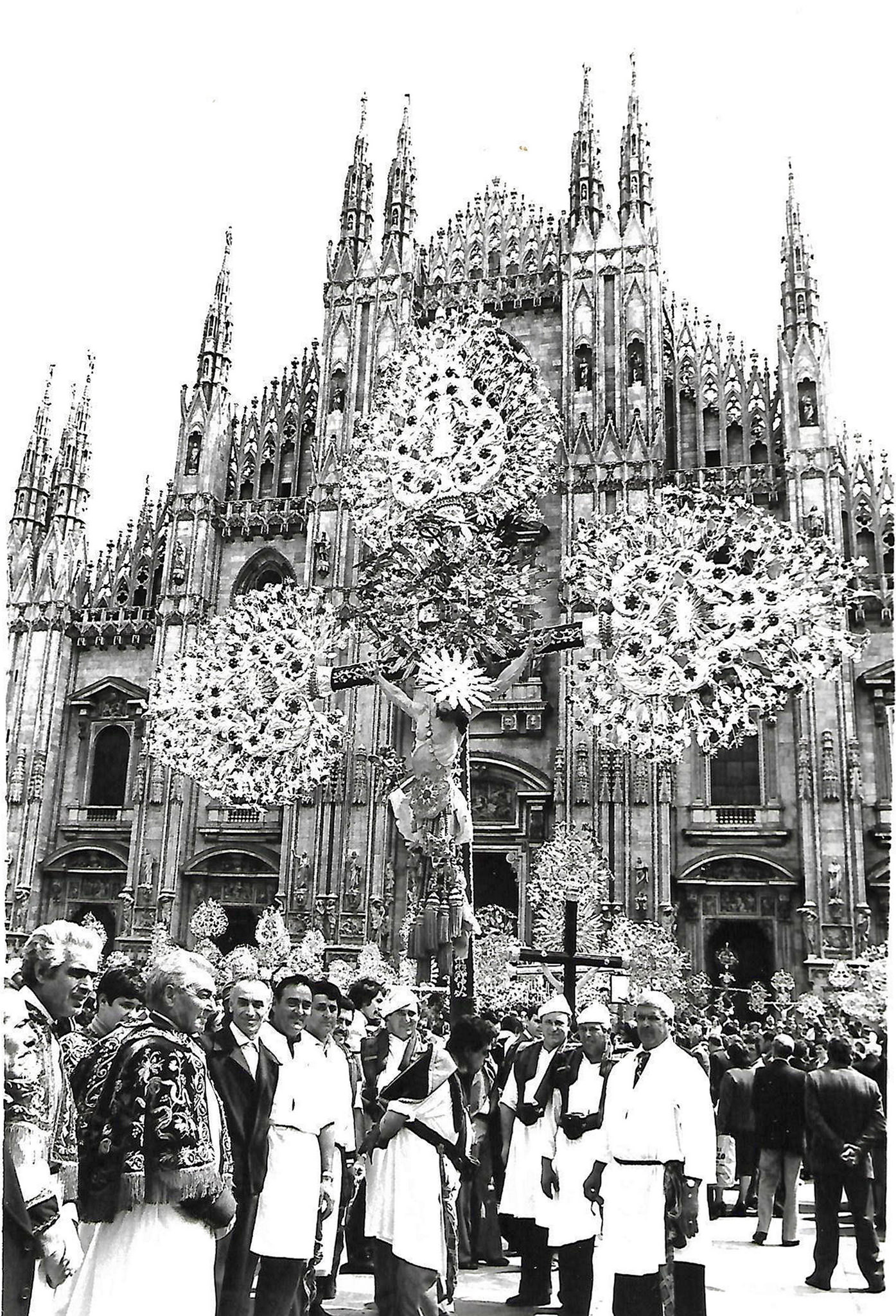Al termine della celebrazione inizierà una grande processione con i membri delle Confraternite partecipanti, nei loro abiti tradizionali e con i loro apparati artistici. Le Confraternite Liguri parteciperanno con i loro grandi Crocefissi processionali che già portarono a Milano in occasione del Cammino Regionale in piazza Duomo del 1979 e per i quali la Regione Liguria, d’intesa con il Priorato delle Confraternite, ha fatto domanda all’Unesco per l’arte immateriale. Le confraternite del Lazio arriveranno con i crocifissi fioriti (che nella giornata di sabato 16 giugno sarà possibile ammirare nella chiesa di Precotto) e le confraternite pugliesi con i grandi stendardi; concluderà la processione la cassa processionale di Sant’Ambrogio di Voltri, la più antica della Liguria (1585), portata a braccia da confratelli in abito da marinai. Partenza dal Duomo e conclusione davanti alla chiesa di San Raffaele.