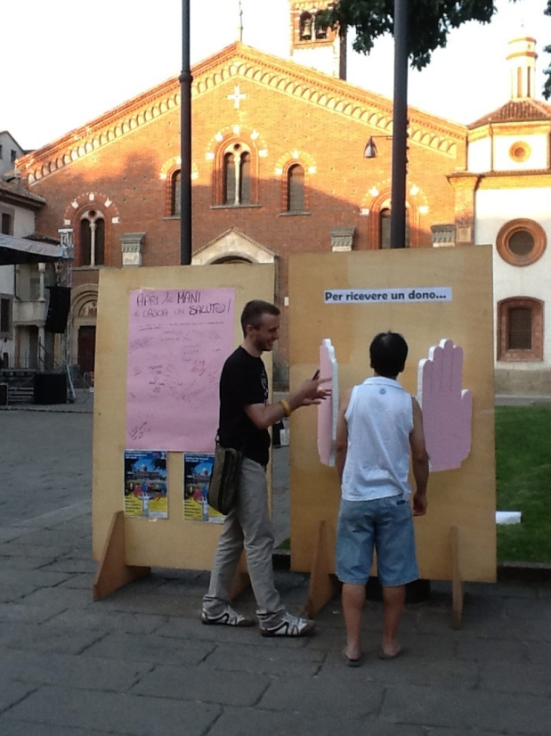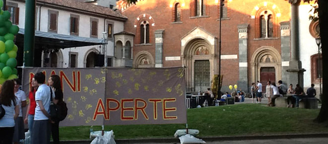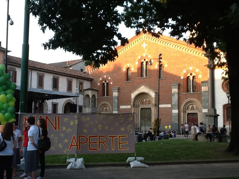 Dopo iniziative analoghe organizzate in altre zone pastorali diocesane, tra cui Rho, Treviglio, Varese e Lecco, il 22 giugno la “Festa della Fede” ha invaso Milano per il suo atto conclusivo, con un corredo di musica, colori e quella capacità, genetica, di aggregare, attrarre e coinvolgere. Lo ha fatto in un giorno e in luoghi non banali: un sabato sera d’inizio estate tra piazza Sant’Eustorgio, Colonne di San Lorenzo e Porta Ticinese, cuori pulsanti, assieme ai vicini Navigli, della movida cittadina. L’iniziativa, organizzata dalla Pastorale giovanile della Diocesi di Milano, era la terza tappa dell’itinerario spirituale “Varcare la soglia” proposto ai giovani milanesi nell’Anno della Fede, di cui ha incarnato perfettamente l’anima. “Un’occasione di gioia e di condivisione – spiega don Maurizio Tremolada, responsabile del Servizio Giovani diocesano – che non può essere vissuta senza varcare le ‘nostre’ soglie, cioè senza uscire dagli ambienti soliti, per andare incontro ai giovani.” Una sfida per l’evangelizzazione che è stata raccolta, già nei primi mesi dell’anno, da alcuni spinners, ovvero dei giovani tessitori-narratori scelti dai vari gruppi, associazioni e movimenti per essere collegamento tra il gruppo stesso e l’Arcivescovo di Milano, Monsignor Angelo Scola. Questa voglia di stare insieme, di condividere la propria Fede è stata ben declinata nella “Festa della Fede” milanese, iniziata già nel tardo pomeriggio di sabato con installazioni e una serie di workshop ospitati dall’Oratorio della Basilica di Sant’Eustorgio e di San Lorenzo Maggiore. Cinque diversi gruppi di lavoro, alcuni di riflessione, dedicati ad alcuni dei temi che coinvolgono più da vicino i ragazzi, come studio e lavoro, giovani e relazioni, altri più operativi per l’allestimento della piazza e dell’aperitivo serale. Alle Colonne di San Lorenzo, invece, si è parlato di evangelizzazione di strada con un percorso pomeridiano di formazione per un centinaio di ragazzi e il clou in serata con preghiere, adorazione nella Basilica, aperta per l’occasione, e il mandato. Non certo una novità per la zona, visto che ormai dal 2005 Sant’Eustorgio, nella sera di ogni terzo sabato del mese apre le porte della sua Basilica fino a notte fonda per dare l’opportunità ai giovani di fare un incontro per molti inusuale e inaspettato: il Signore. “Quella dell’evangelizzazione di strada è una straordinaria occasione per svegliare la fede che a volte c’è, ma è tenuta nascosta” – afferma don Zbigniew Wadolowski, per tutti semplicemente don Zibi – Capita che a volte i giovani entrino con una bottiglia di birra in mano e un atteggiamento apparentemente inscalfibile e a fine serata scoppino in lacrime.” In serata, poi, davanti a un pubblico corposo il concerto testimonianza del quartetto rock vicentino The Sun, esibitosi l’anno scorso a Milano davanti a Papa Benedetto XVI in occasione del VII Incontro Mondiale delle Famiglie. Una serata, presentata dalla giornalista e conduttrice Francesca Fialdini, arricchita dalla testimonianza di un acclamatissimo Francesco Silvestre, leader dei Modà, che dell’importanza della Fede nella sua vita e per la sua carriera non ha mai fatto mistero. Ad aprire la serata un dialogo sul palco tra alcuni giovani delle varie realtà cattoliche e Monsignor Carlo Faccendini, Vicario episcopale per la città di Milano, su alcuni temi rilanciati proprio dai giovani, come l’amore, la vita comunitaria, la Fede e il suo rapporto con la vita di tutti i giorni. E a chi gli chiedeva su come un giovane possa aiutare pienamente la sua comunità Monsignor Faccendini ha risposto: “Restando giovani e vivendo profondamente la vostra giovinezza; con quella carica di passione, coinvolgimento, freschezza e provocazione che vi caratterizzano e di cui tanto le nostre parrocchie hanno bisogno.” Vivendo la Fede, insomma, e trasformarla in un’occasione di festosa condivisione.