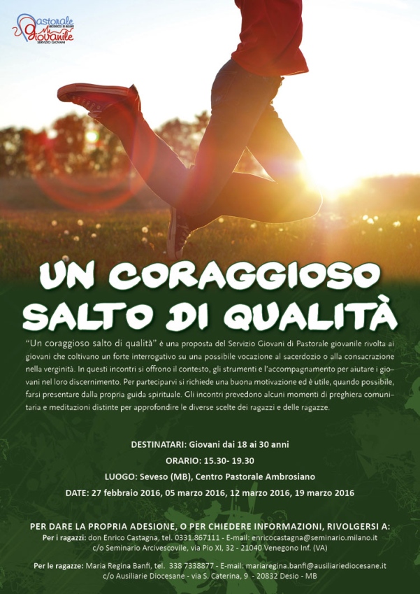 Era il 1987 quando l’Arcivescovo Carlo Maria Martini affidava alla Diocesi il programma pastorale dal titolo Dio educa il suo popolo. Al n.10 (“Rotture e salti di qualità”) afferma che «sarebbe erroneo concepire il cammino educativo come un semplice processo evolutivo, che va dal meno bene al bene, dal bene al meglio, in una tranquilla successione di passaggi sempre più esigenti. In realtà esistono nell’itinerario pedagogico cristiano dei momenti caratteristici di rottura, senza i quali non si può neppure parlare di “educazione cristiana”, ma di semplice principio evolutivo naturale. Il momento fondamentale della rottura, che caratterizza il cammino formativo cristiano, è chiamato la “conversione”: “Il tempo è compiuto e il Regno di Dio è vicino: convertitevi e credete al Vangelo” (Marco 1, 15). Questa parola di Gesù è decisiva per tutto il processo educativo: non c’è semplicemente una partenza da zero; c’è un momento di rottura col passato, una svolta completa. Senza di esso, l’educazione cristiana non raggiungerebbe la sua verità. Tale momento di rottura viene ripreso in momenti successivi, che allora meglio si caratterizzano come “salti di qualità”. L’uomo ricco che si presenta a Gesù (Marco 10, 17-22), aveva già compiuto un cammino di osservanza della legge. Gesù gli chiede un salto: Va’, vendi quello che hai e dallo ai poveri. Questo passaggio è decisivo. Gesù non lo risparmia, non lo ribassa, ha il coraggio di proporlo con fermezza, anche di fronte al rischio di un rifiuto. La «vocazione», in particolare quella di speciale dedicazione (al sacerdozio, alla vita religiosa, alla consacrazione secolare…) ha la caratteristica di un coraggioso «salto di qualità». Ciò vuol dire che l’itinerario cristiano non è un semplice cammino in ascesa. Vi sono momenti in cui occorre decidersi per un salto qualitativo».
