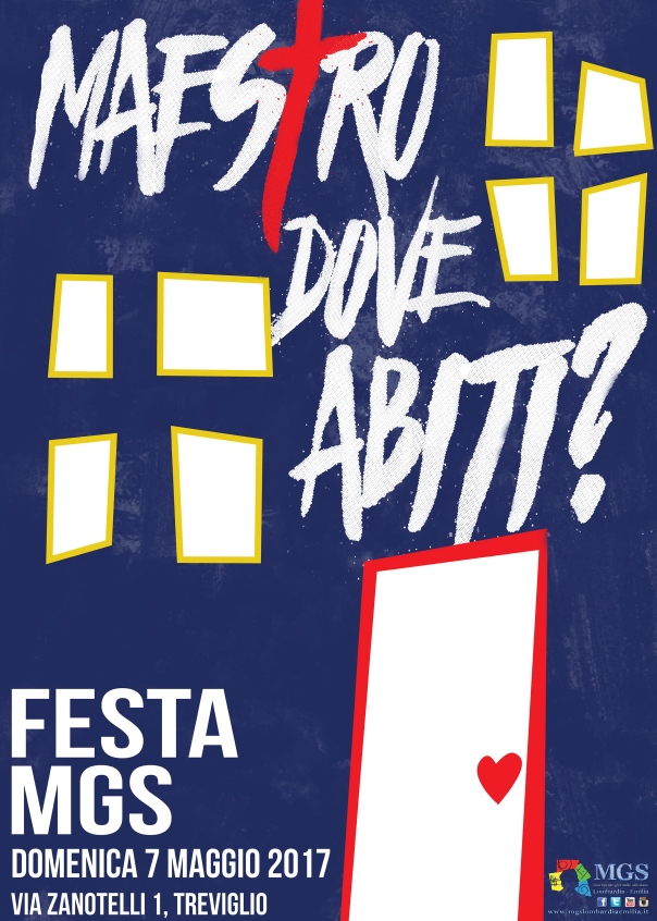 Domenica 7 maggio, presso il Centro salesiano “Don Bosco” di Treviglio (via Zanovello 1), è in programma la Festa 2017 del Movimento giovanile salesiano (Mgs), sul tema «Maestro dove abiti?».