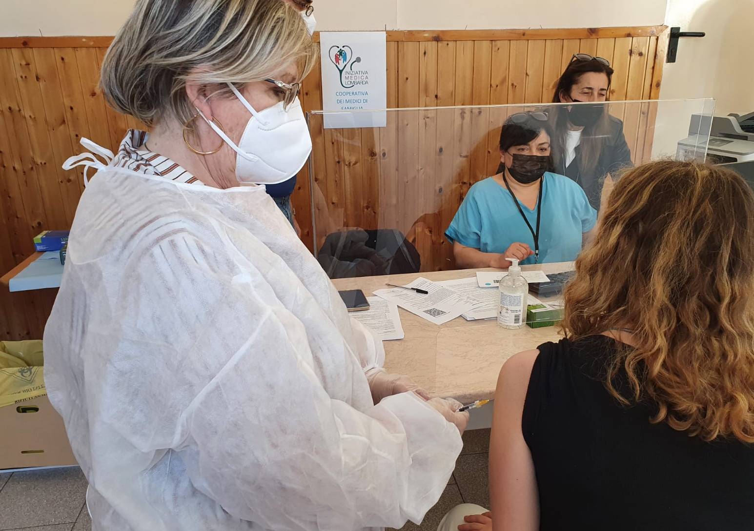 Prima c’è stata la preparazione pratica durata quasi un mese: sistemazione degli ambienti, allestimento del centro con entrata e uscita, primo soccorso, postazioni con i computer… Poi siamo passati alla formazione dei volontari, tre o quattro serate con l’intervento di medici che lavorano a Vimodrone, che hanno affrontato anche l’aspetto psicologico, pensando alla paura di vaccinarsi. Apriamo dalle 8 alle 20 tutti i giorni, compresi sabato e domenica, tranne il venerdì, giorno di mercato, che dedichiamo alla sanificazione più precisa, quando i locali vengono utilizzati anche dall’Azione cattolica e dalla Caritas. Arriviamo a 350 vaccinazioni al giorno, la metà di somministrazioni dei centri più organizzati di noi, come quello della vecchia filanda di Cernusco sul Naviglio. Qui arrivano gli abitanti di Vimodrone, ma anche di altri Comuni, chiunque si prenoti da vicino o da lontano.