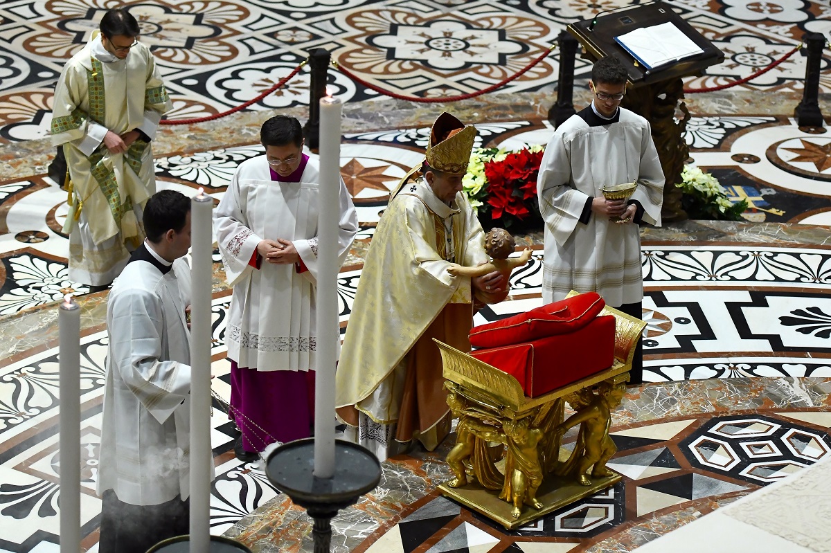 È “la luce che splenderà oggi su noi, poiché per noi è nato il Signore”, come dice il canto e suggeriscono la Kalenda natalizia e lo splendido brano evangelico del Prologo del Vangelo di Giovanni, “Veniva nel mondo la luce vera, quella che illumina ogni uomo”.