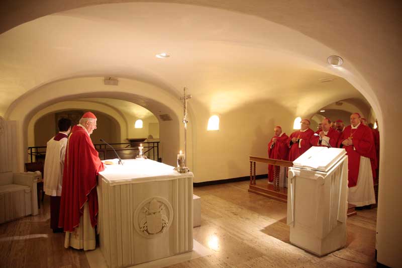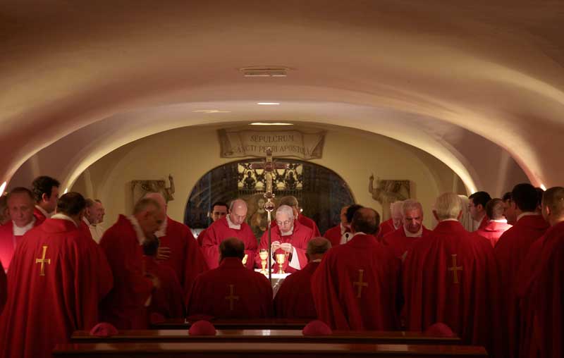 Durante la messa molto partecipata nella Basilica Vaticana presso l’altare della tomba di San Pietro con la quale si è aperta la giornata, il cardinale Scola, parlando del tempo quaresimale che stiamo vivendo, ha invitato tutti a stare uniti nella preghiera, nella carità e nella speranza.