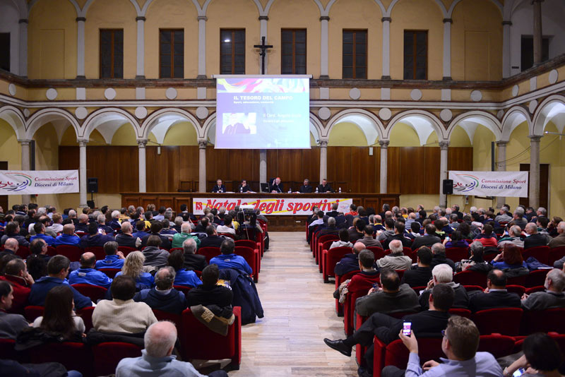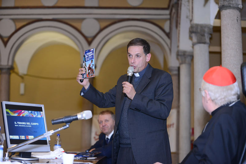 Don Alessio Albertini, segretario della Commissione diocesana sport, e don Samuele Marelli, direttore della Fom, concludono snocciolando i numeri dello sport parrocchiale in Diocesi: 850 società, 80 mila iscritti, 10 mila adulti impegnati a vario titolo come tecnici o dirigenti. A loro è affidato Il tesoro del campo. Sport, educazione, comunità, un agile libretto di 20 pagine che vuole servire da guida affinché le società siano sempre più luogo di educazione. Per considerare i ragazzi, come vi si legge, «innanzitutto come persone, coinvolte in un processo di sviluppo al quale lo sport può contribuire».