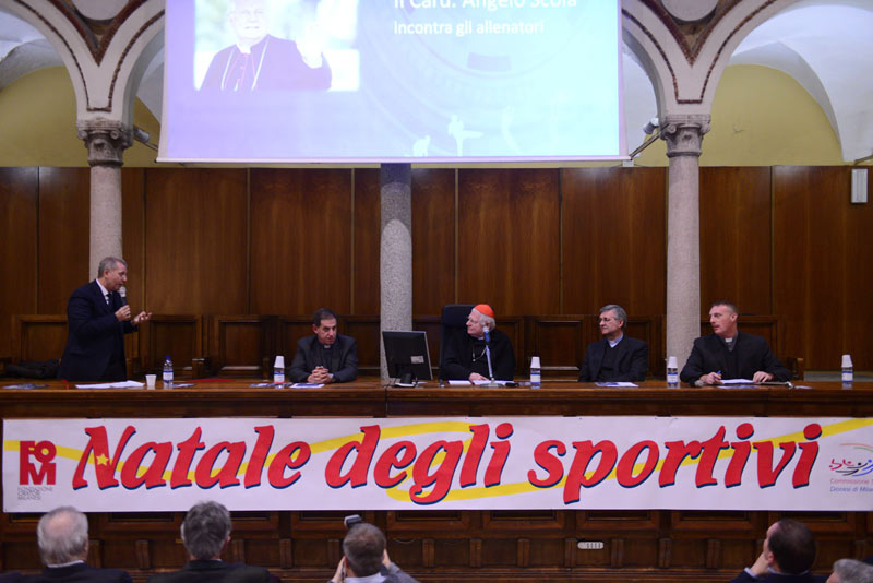 «Il Natale è come una finta nel calcio. Un momento di sospensione della giocata che ti fa vincere il tackle. Così nella nostra quotidianità deve essere una battuta di distacco che ci consente di riacciuffare il senso della vita». Il cardinale Angelo Scola esordisce azzardando un paragone che rivela una certa competenza nell’argomento calcistico. Guadagnando così punti sui suoi ascoltatori: gli allenatori delle 850 società sportive degli oratori della diocesi. Che da quel momento iniziano ad ascoltare le sue parole, sembra, con ancora più attenzione.