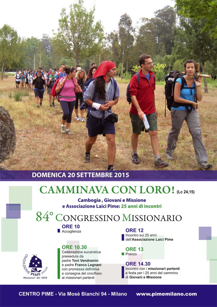 Saranno tre venticinquesimi anniversari che si celebrano durante questo 2015 al centro dell’84° Congressino missionario, l’appuntamento che segna l’inizio del nuovo anno per i missionari del Pime, domenica 20 settembre, presso la sede di via Mosé Bianchi 94 a Milano, a partire dalle 10. A presiedere la celebrazione eucaristica – cuore della mattinata – saranno padre Toni Vendramin e padre Franco Legnani, tra i primi missionari a partire nel 1990 per l’allora nuova missione aperta dal Pime in Cambogia. Il Congressino sarà l’occasione per rendere grazie per i frutti del cammino compiuto in questo Paese, segnato nella sua storia recente dalle grandi sofferenze causate dal genocidio messo in atto dagli khmer rossi.