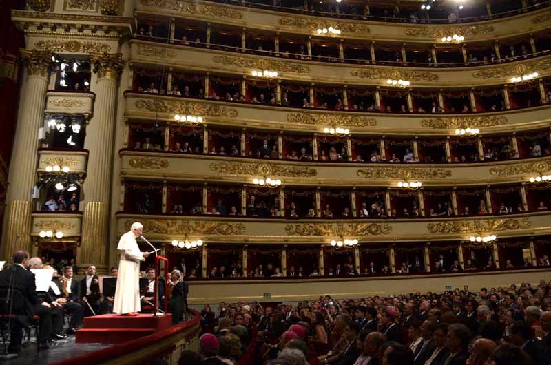 Milano ha offerto il suo saluto a Papa Benedetto XVI, con il cuore e la mente rivolti ai terremotati del Mantovano e dell’Emilia Romagna, con un mirabile evento musicale al Teatro alla Scala: la Nona Sinfonia, Alla gioia, di Ludwig van Beethoven, diretta da Daniel Baremboim.