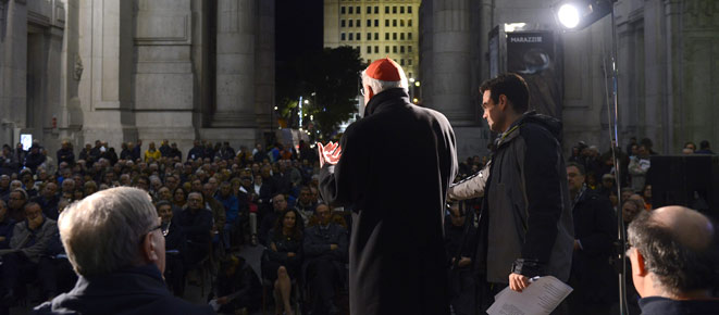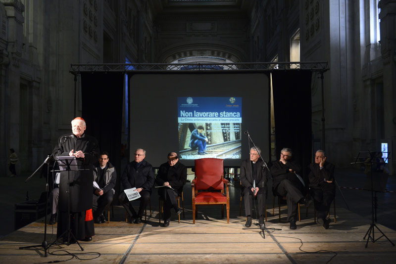 «Ci troviamo in un luogo – rileva l’Arcivescovo di Milano – in cui di solito si passa di corsa». Stasera invece siamo chiamati, prosegue, «a soffermarci per risvegliare la tensione verso la verità di noi stessi e ad aprire il nostro cuore a coloro che sono in difficoltà in una dimensione costitutiva del proprio io: la mancanza del lavoro». Persone verso le quali «dobbiamo porci in condizione di ascolto: non è difficile comprendere il dramma e la tragedia di chi ha perso il lavoro».
