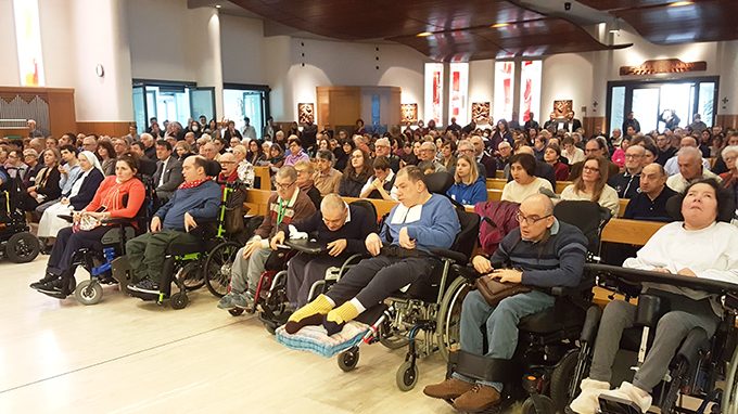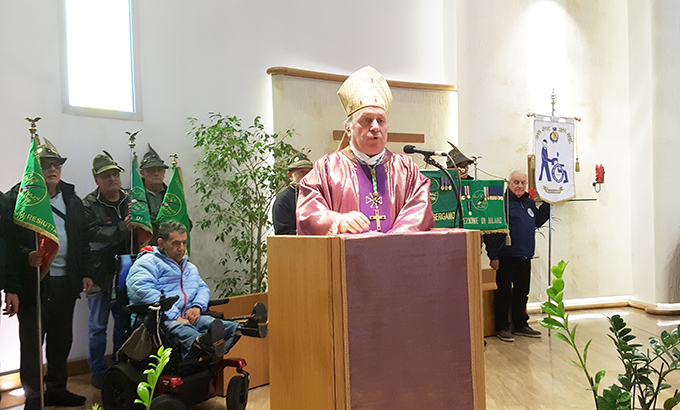 Nell’omelia, monsignor Vegezzi ha ricordato l’attualità del messaggio del beato don Carlo: «Don Gnocchi ha vissuto la propria vita a partire dalla parola di Dio, che ha testimoniato con le azioni, con il suo modo di agire e di fare. Don Carlo ha saputo fare cose grandi. Il Vangelo di Matteo di quest’oggi è incentrato sul Discorso della Montagna di Gesù, sul “Ma io vi dico…” rivolto ai suoi discepoli e alla folla, sull’andare oltre i precetti dell’Antico Testamento, sul pregare per i nemici e tanto altro. Il “Ma io vi dico” del Vangelo ci indica il salto di qualità, per rendere colorata e piena di senso l’esistenza di quanti lo seguono, per puntare più in alto, alla perfezione. Ecco, don Gnocchi ha vissuto tutto questo in modo pieno e totale. Non si è accontentato del minimo, si è dato da fare perché l’amore del Signore Gesù che sentiva proprio doveva essere vissuto e condiviso con tutte le persone che incontrava, specie con i più deboli. Mi piace allora leggere questa pagina di Vangelo come vissuta da don Carlo in maniera concreta, dando tutto se stesso, come ha fatto nella sua vita e con quelli che ha incontrato, tra cui gli alpini nelle guerre, con i mutilatini e con l’Opera di cui voi medici, terapisti e operatori siete oggi eredi e continuatori».