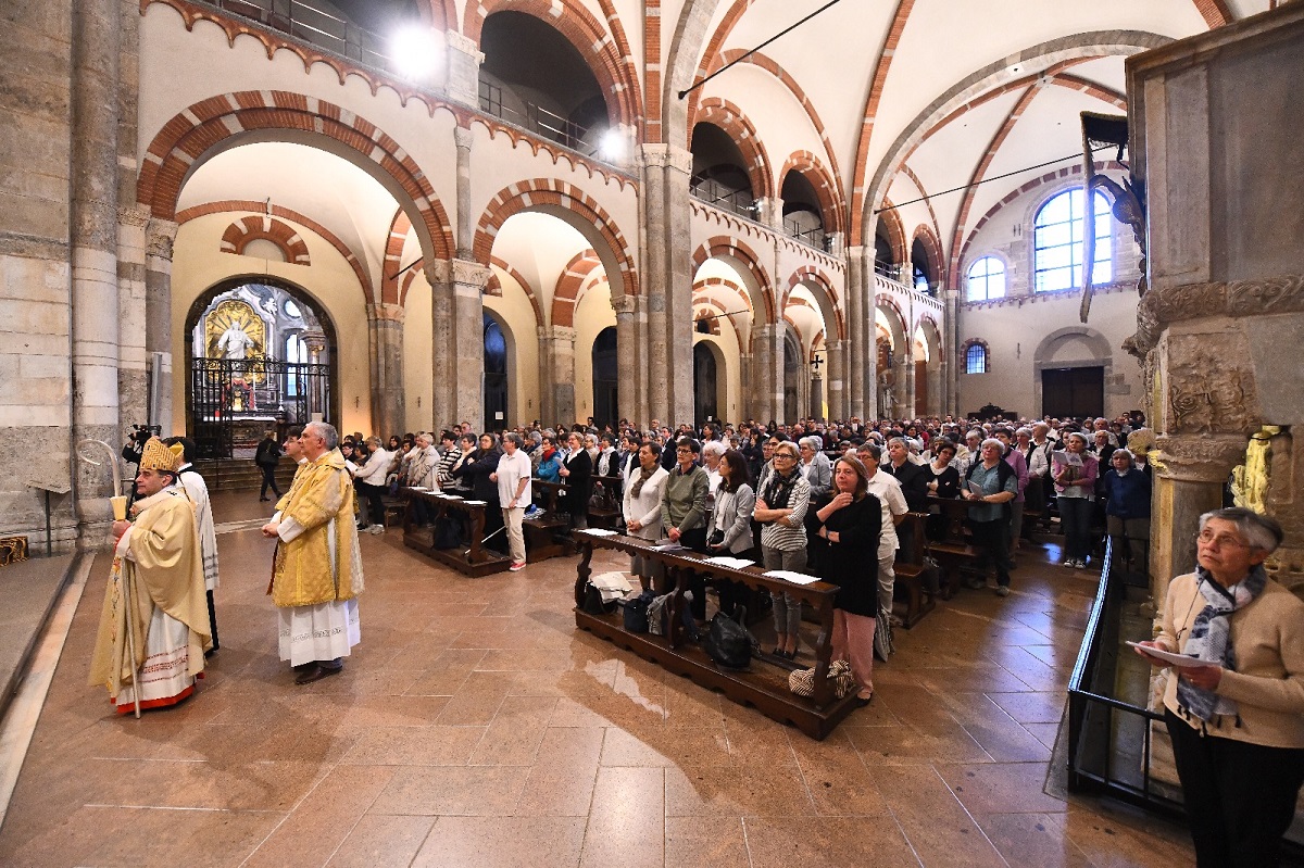 È questo l’augurio e l’auspicio dell’Arcivescovo rivolto alle Ausiliarie Diocesane, riunite nella loro quasi totalità, presso la basilica di Sant’Ambrogio illuminata a festa, per la Celebrazione eucaristica concelebrata da un centinaio di sacerdoti, tra cui i vicari episcopali, i vescovi per le Forme di Nuova Consacrazione e per la Vita Consacrata Maschile, monsignor Paolo Martinelli e per la Vita Consacrata Femminile, monsignor Luigi Stucchi, dal vicario generale, monsignor Franco Agnesi e dall’abate di “Sant’Ambrogio”, monsignor Carlo Faccendini.