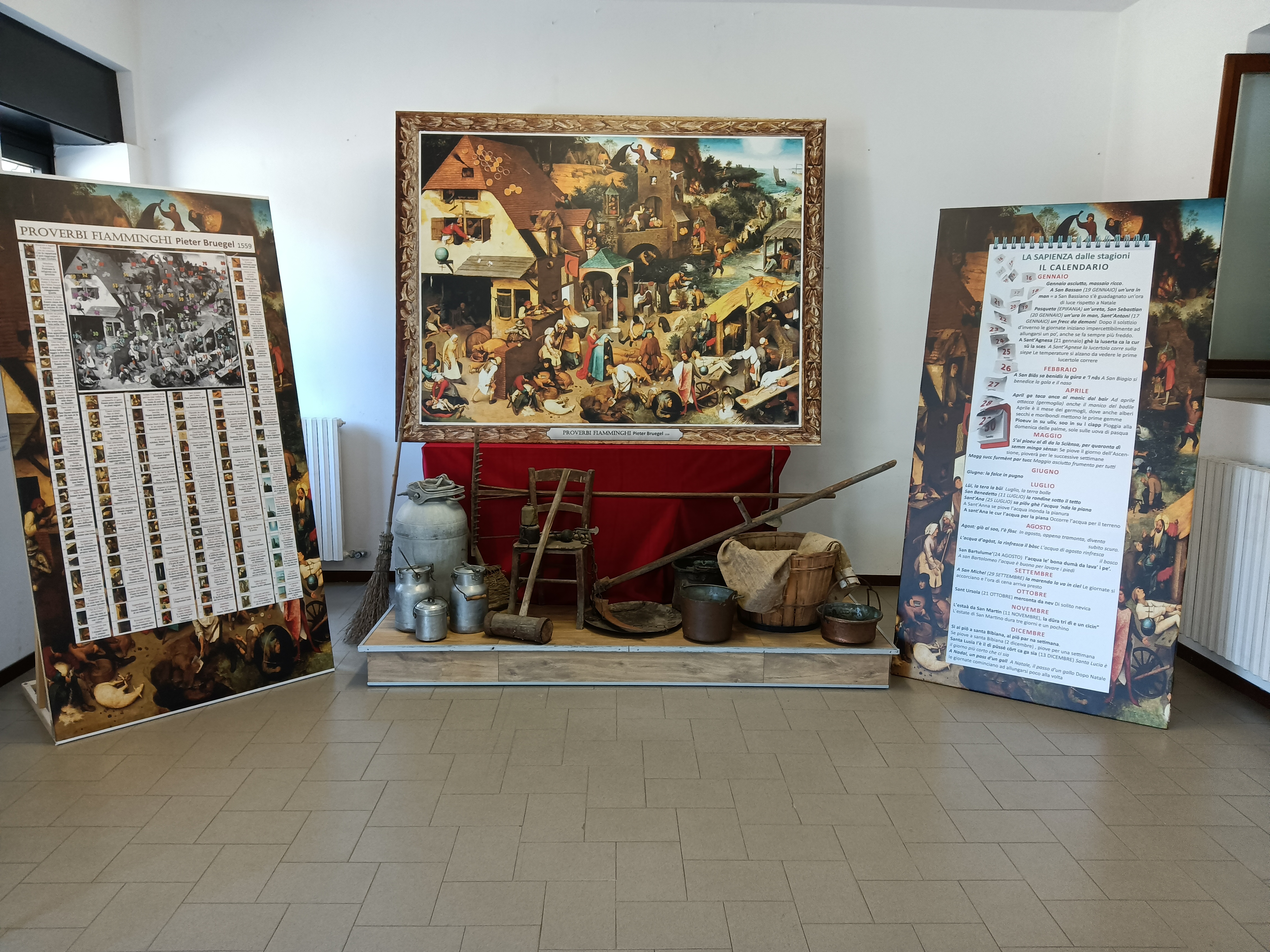 Altra grande fonte ispirazione è stato il dipinto Proverbi fiamminghi (1559) di Pieter Bruegel. La riproduzione della tela in grandi dimensioni è presente nella sala insieme al pannello che guida e spiega i proverbi illustrati. Ai piedi del quadro sono stati collocati alcuni oggetti antichi della vita contadina di Bareggio, creando così il giusto clima di sapienza e di vita popolare per apprezzare e gustare la mostra.