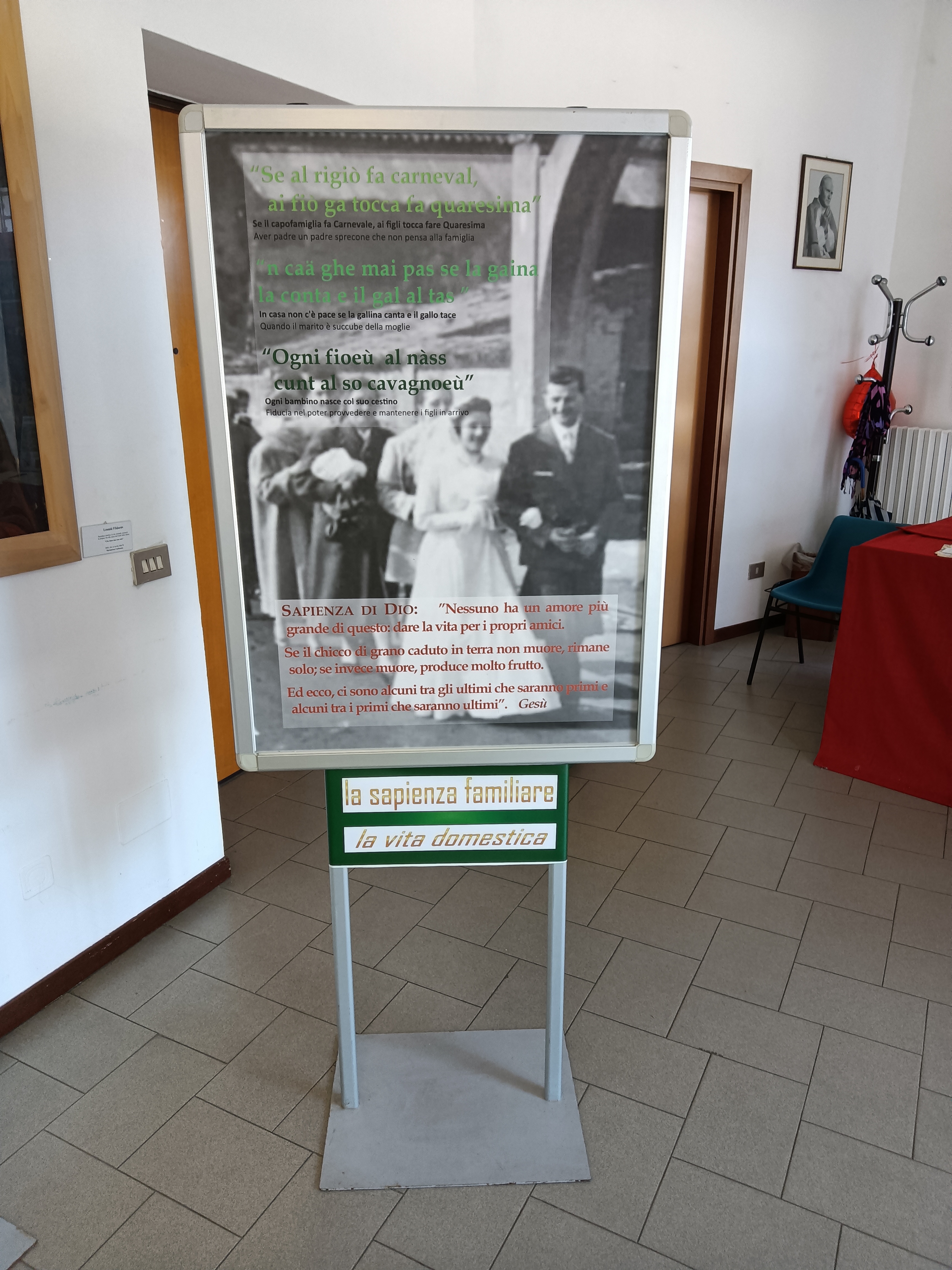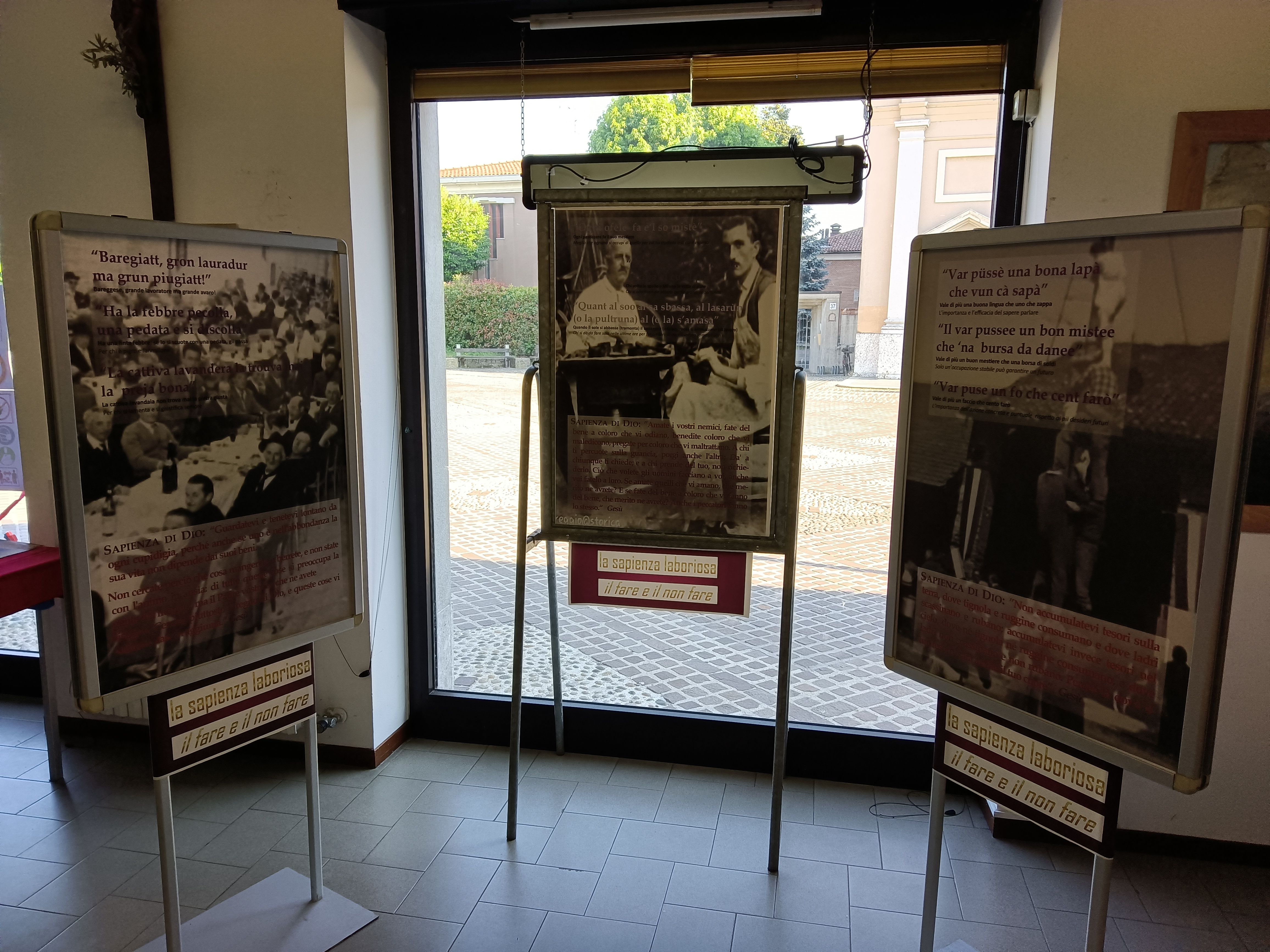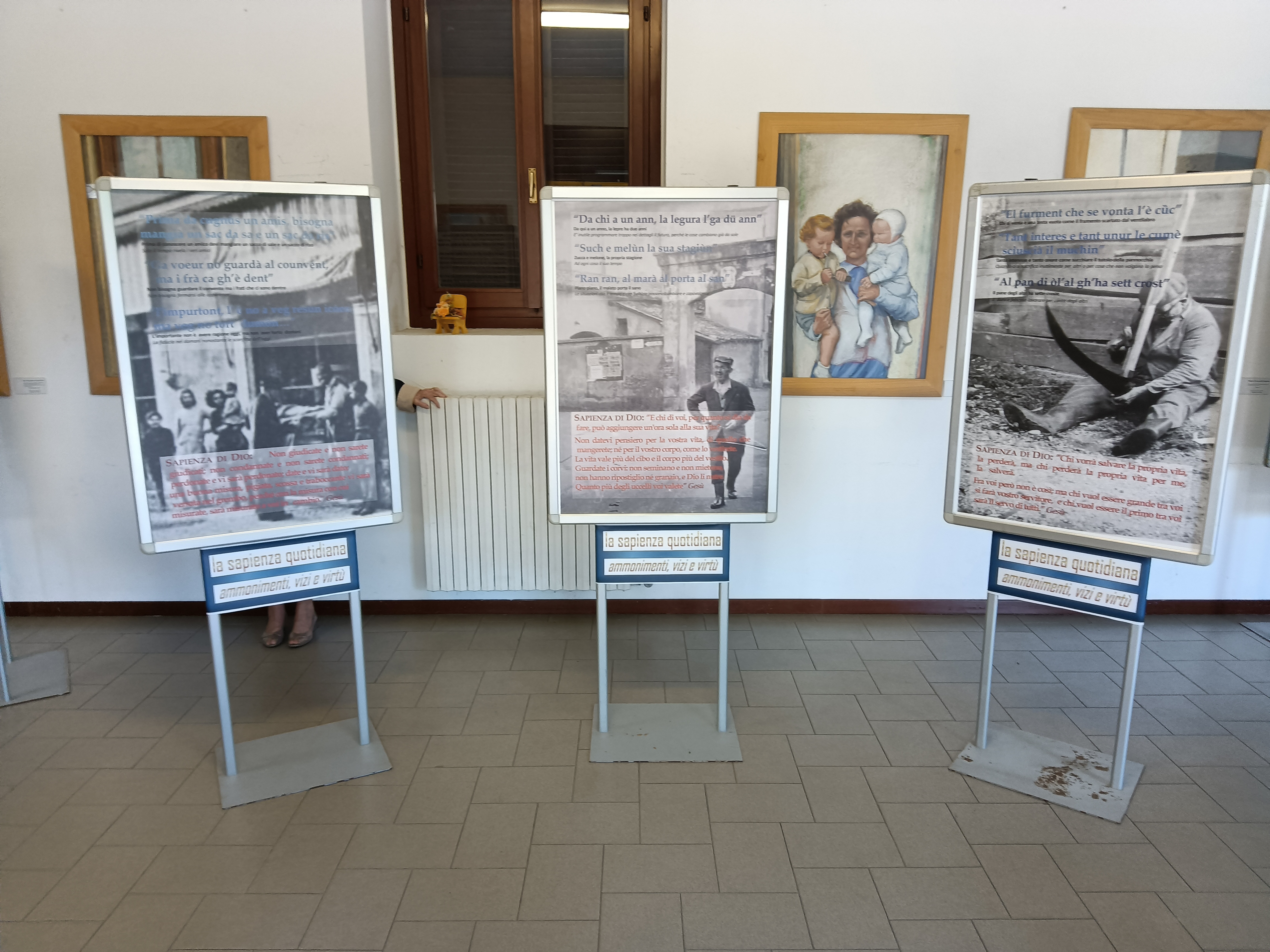 A questa fase è seguita la ricerca e la raccolta di fotografie antiche inerenti alla vita quotidiana a Bareggio, da abbinare alle tematiche per allestire gli undici pannelli da esporre. In ogni pannello, oltre alla sapienza degli uomini riassunta dai proverbi, si è inserita anche la Sapienza che viene dal cielo, con alcuni detti di Gesù tratti dai Vangeli.