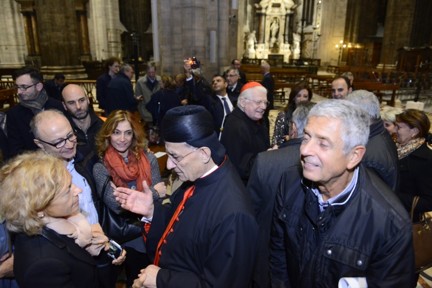 «Nel nostro Paese esistono sette Chiese che portano il patrimonio di Cristo. Questa varietà cattolico e ortodossa che vede anche la presenza delle Chiese evangeliche in Libano (la Chiesa maronita-antiochena, tuttavia, è l’unica a non essere divisa tra diverse confessioni cristiane, essendo sempre rimasta fedele a Roma), testimonia che non rappresentiamo una minoranza. Siamo in Libano da duemila anni e abbiamo formato lo strato profondo della cultura in Medio Oriente», avverte subito il cardinale Béchara, ascoltato con attenzione dai moltissimi che siedono tra le navate della Cattedrale, tra cui il Console generale del Libano a Milano, Walid Haidar, e – oltre al Consiglio Episcopale Milanese -, molti rappresentanti di associazioni, gruppi, movimenti e realtà parrocchiali.