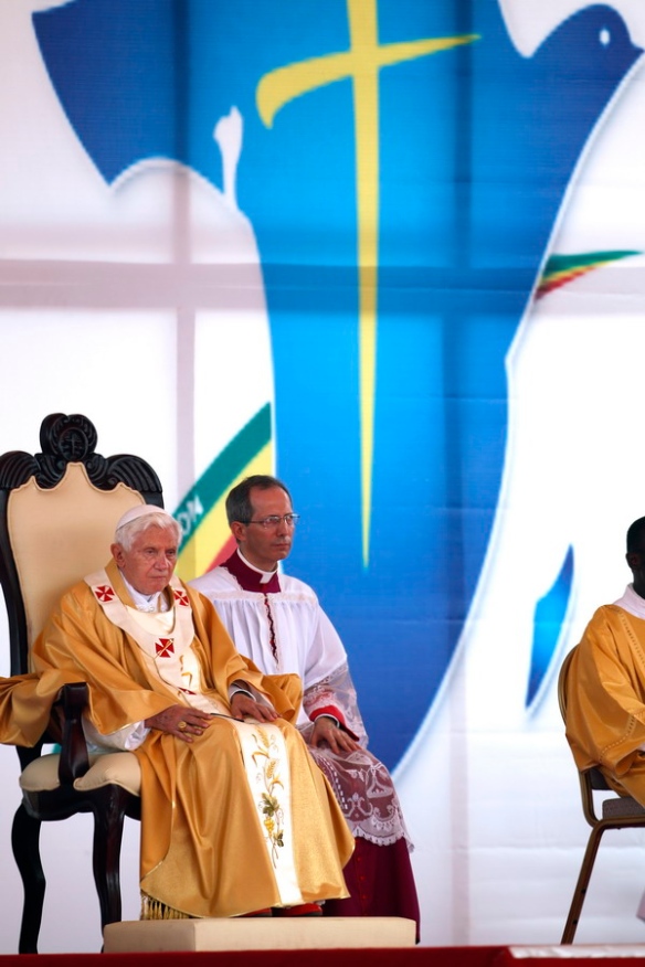 Il Papa celebra la messa nello stadio dell’amicizia di Cotonou sotto un sole caldissimo, liturgia che vive dei canti, della gioia e dei ritmi tipici di queste latitudini. Dice: «Il figlio di Dio è diventato uomo, ha condiviso la nostra esistenza, sino nei dettagli più concreti, facendosi il servo del più piccolo dei suoi fratelli». Un re «sconcertante» perché, afferma Benedetto XVI, noi siamo abituati ai segni della regalità «nel successo, nella potenza, nel denaro o nel potere» e «facciamo fatica ad accettare un re il cui trono è una croce».