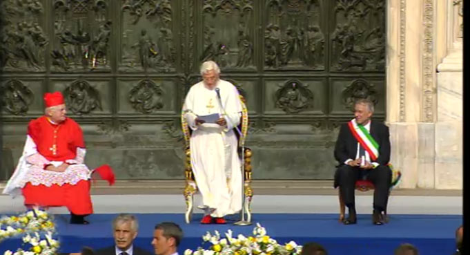 Benedetto XVI in piazza Duomo: «Milano, crocevia di popoli e culture»
