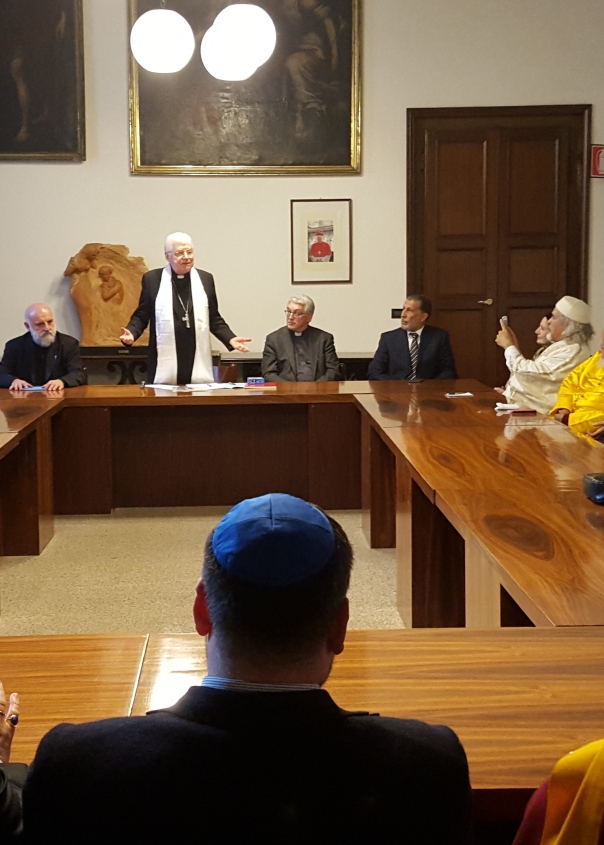 Al termine dell’incontro, prima di posare per una foto di gruppo, i vari rappresentanti delle religioni presenti a Milano hanno omaggiato il Cardinale di qualche dono.