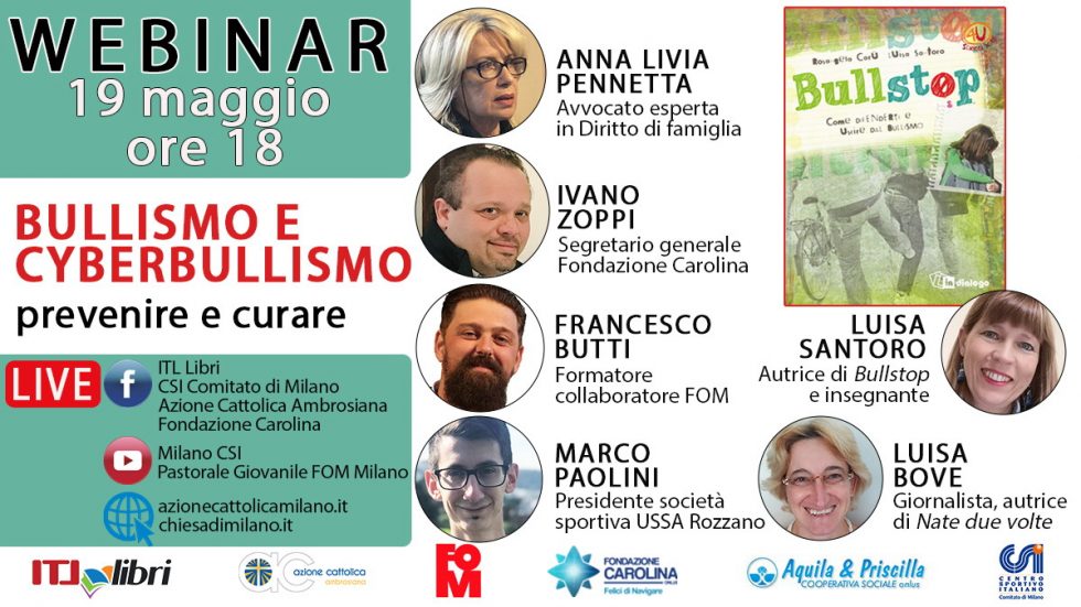Queste domande saranno al centro del webinar «Bullismo e cyberbullismo: prevenire e curare», in programma mercoledì 19 maggio alle 18, promosso dall’editore Itl Libri con Fom, Azione Cattolica Ambrosiana, Csi Milano, Fondazione Carolina Onlus e Cooperativa Aquila&Priscilla.