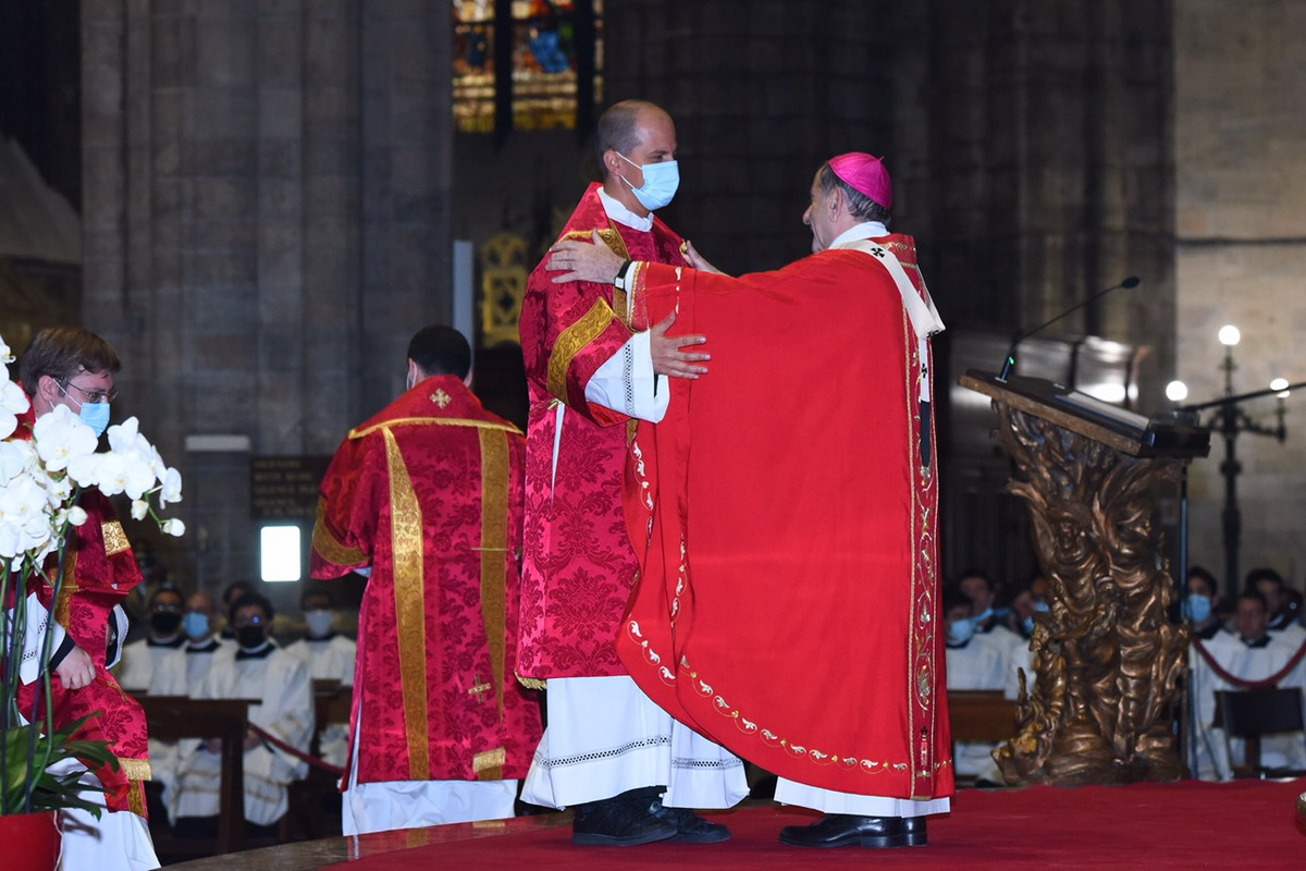 Il “Sì, lo voglio”, “Sì, lo prometto” dei candidati pronunciato davanti all’Arcivescovo, le Litanie dei Santi, sdraiati ai piedi dell’altare maggiore, l’imposizione delle mani sul loro capo la preghiera di Ordinazione, la vestizione degli abiti diaconali, la consegna del Libro dei Vangeli, sono l’immagine viva di queste parole da portare al mondo. Camminare nell’amore, con una vita nuova a servizio gli uni degli altri, perché si è incontrato il Signore».