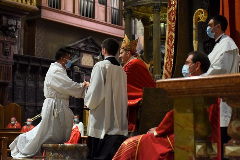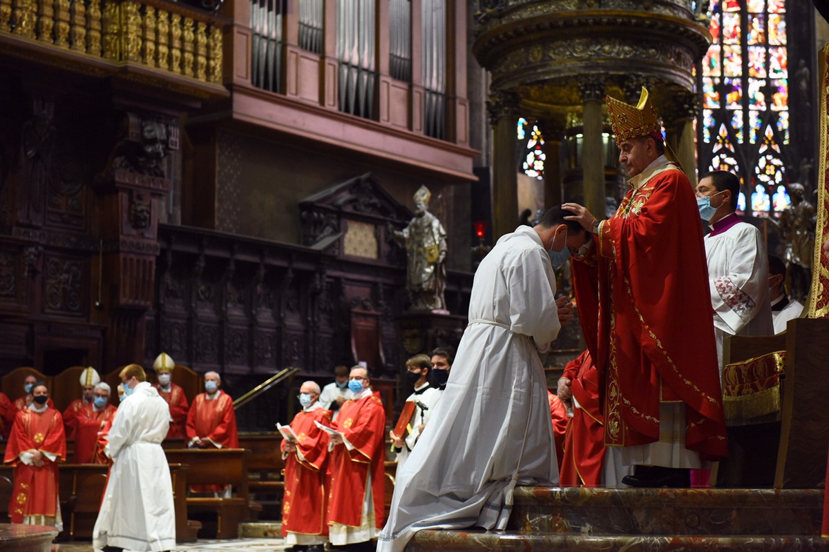 A tutti loro – ma, forse, sarebbe meglio dire a tutti noi – i diaconi hanno un messaggio da dare e una parola da dire. A sottolinearlo è l’Arcivescovo che, in Duomo, conferisce, appunto, le Ordinazioni diaconali ai 10 giovani uomini che diventeranno preti ambrosiani il 12 giugno 2021 e a 7 candidati del Pontificio Istituto delle Missioni Estere provenienti dai 4 angoli del mondo. Concelebrano 7 vescovi ausiliari, i Superiori ed Educatori del Seminario, il Superiore generale del Pime, padre Ferruccio Brambillasca, circa 200 sacerdoti.